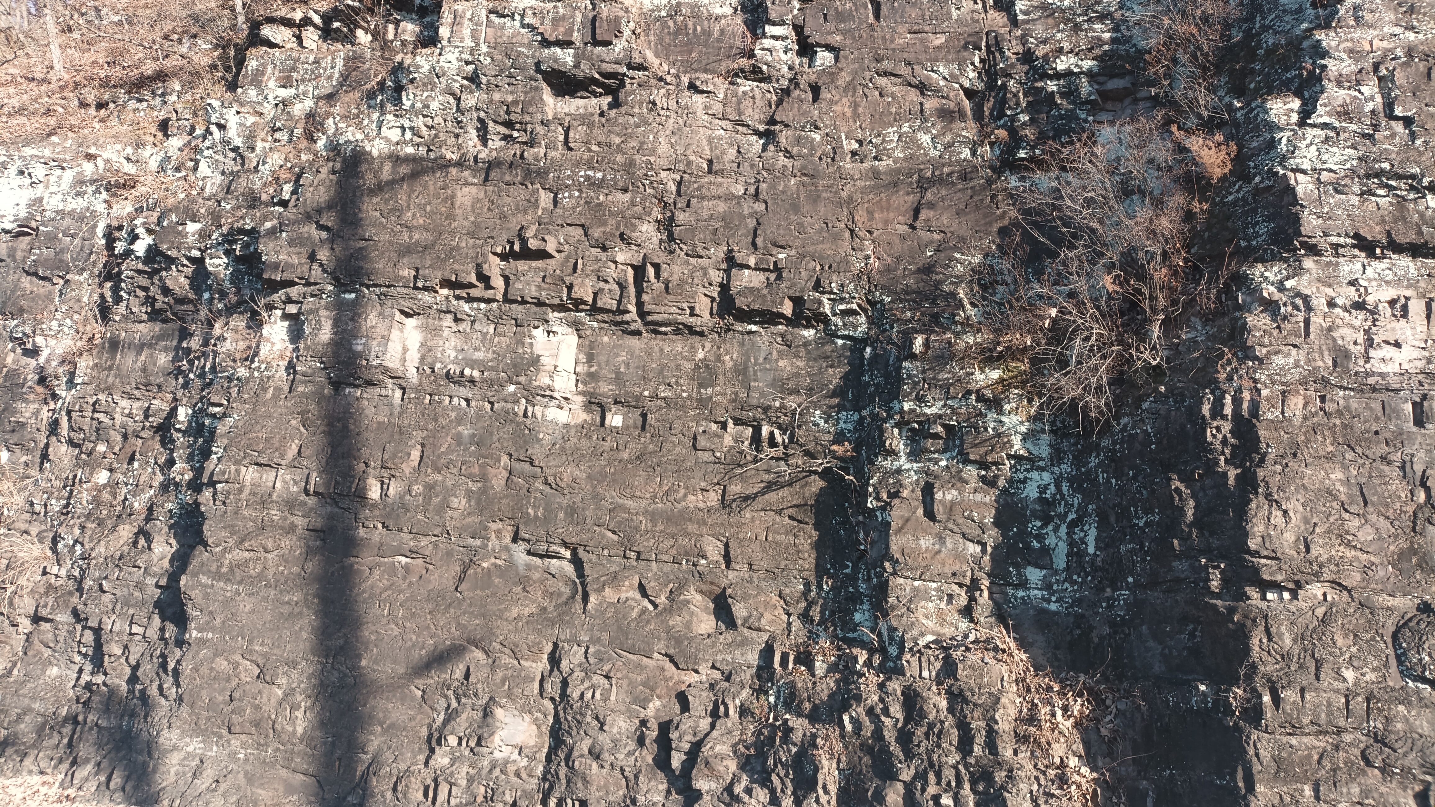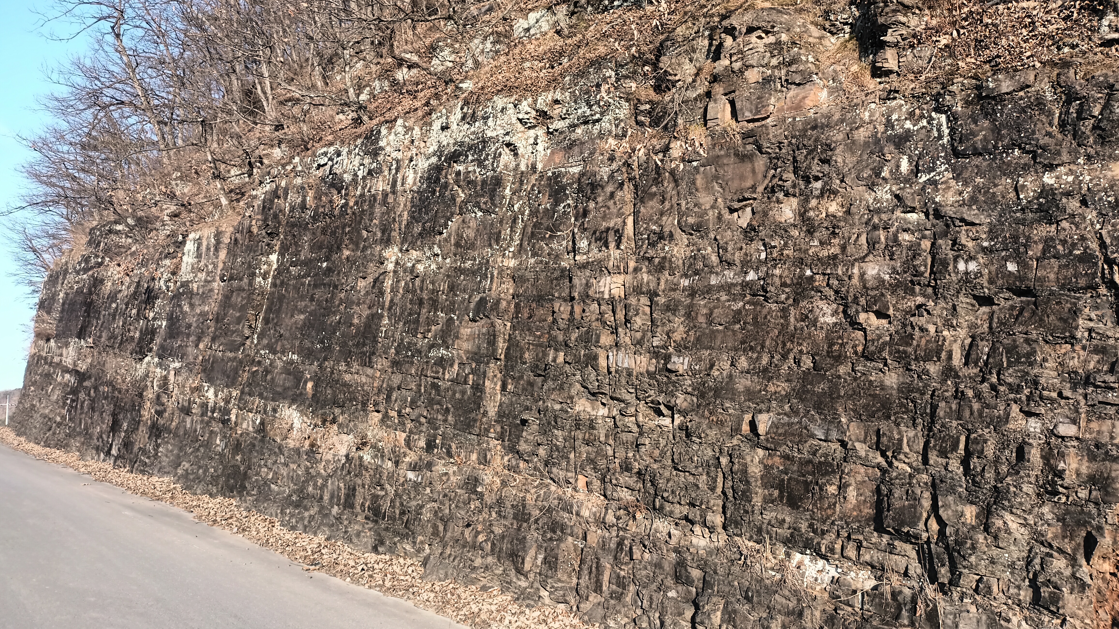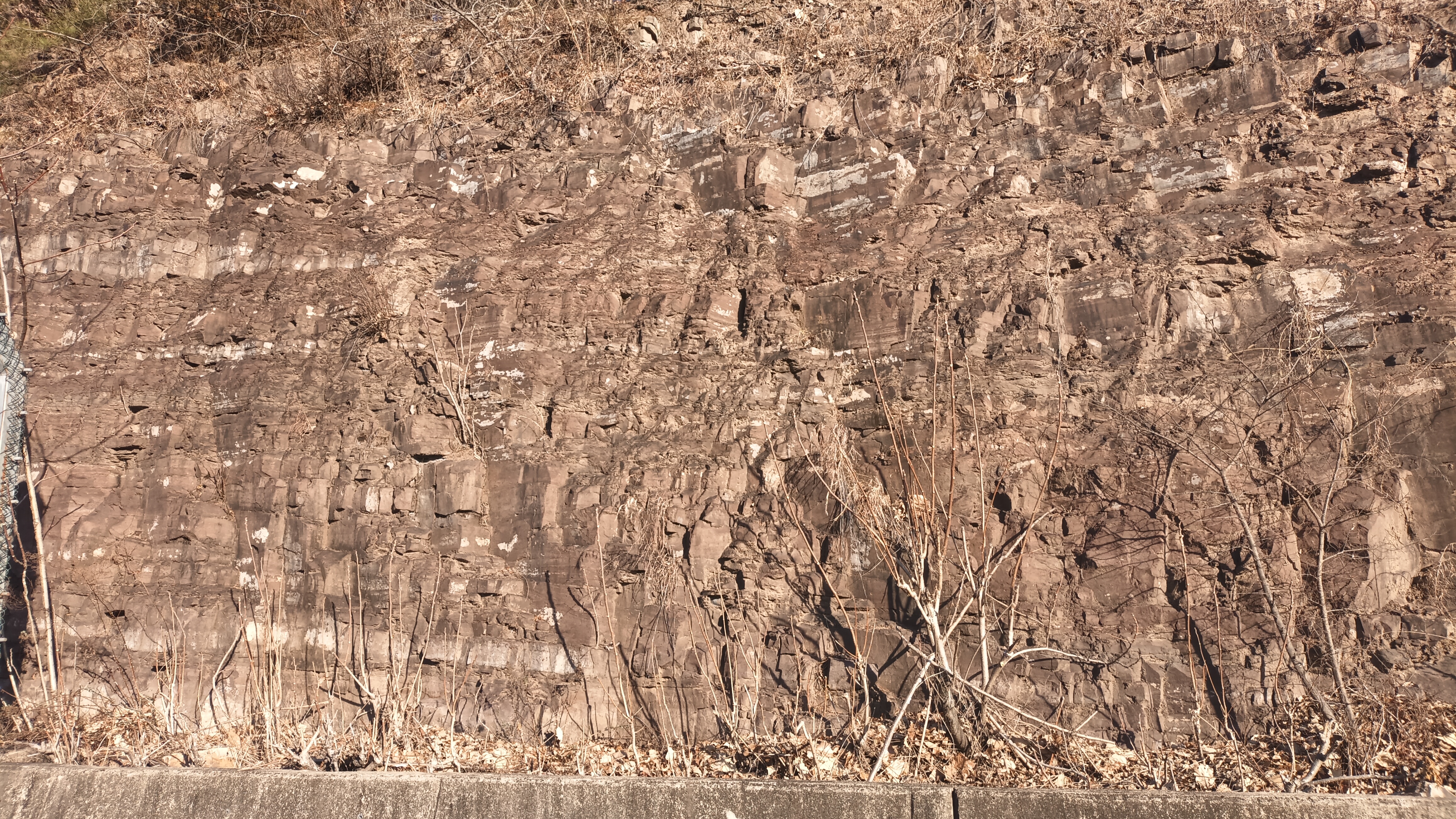 '''의성군 사곡면 양지리의 구눌저수지 동측 도로의 사곡층 노두'''