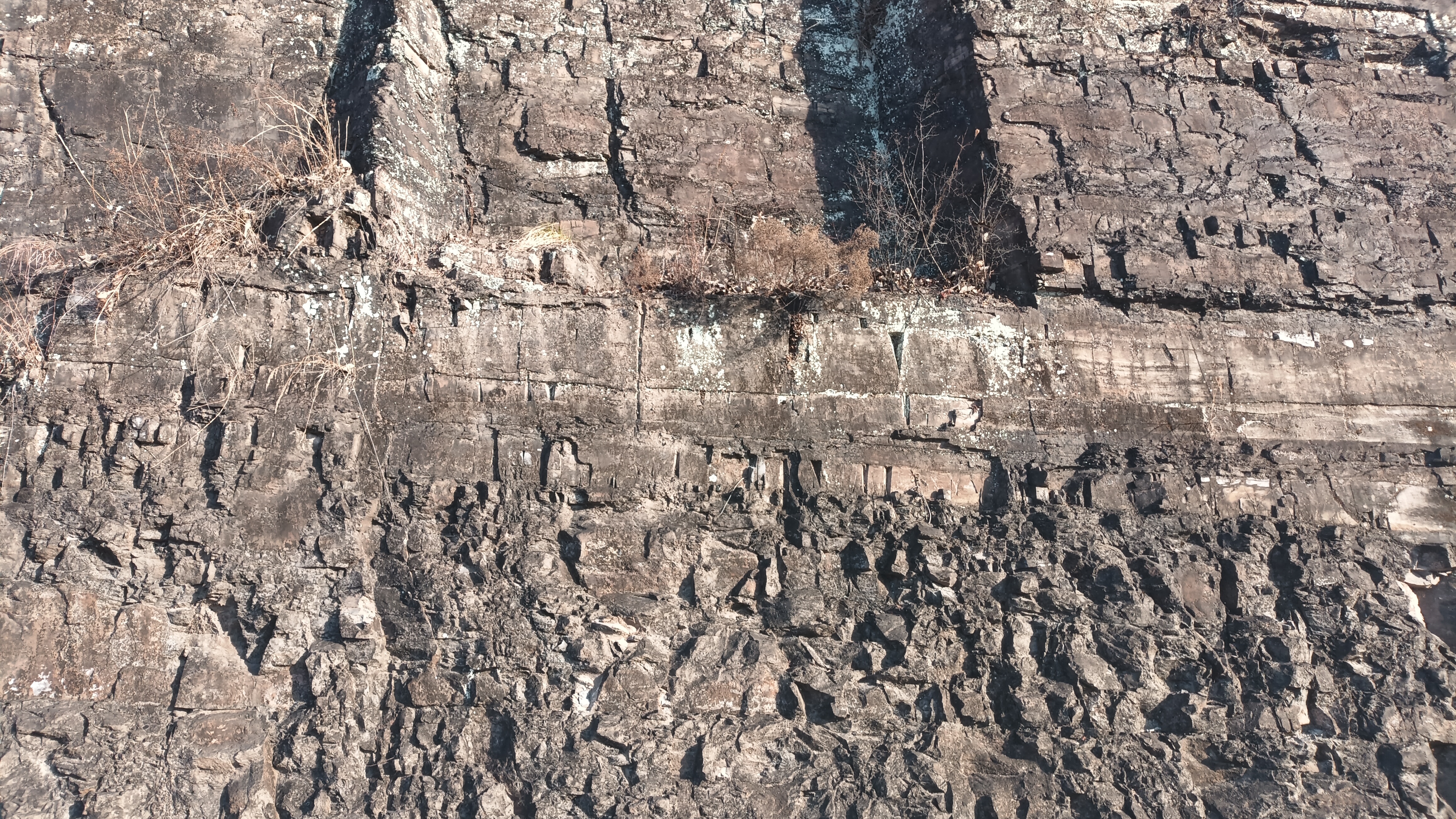 - 하부: 두께 약 700m. 사암과 셰일로 구성되며 자색(赭色)을 띠는 층을 포함한다.[10]