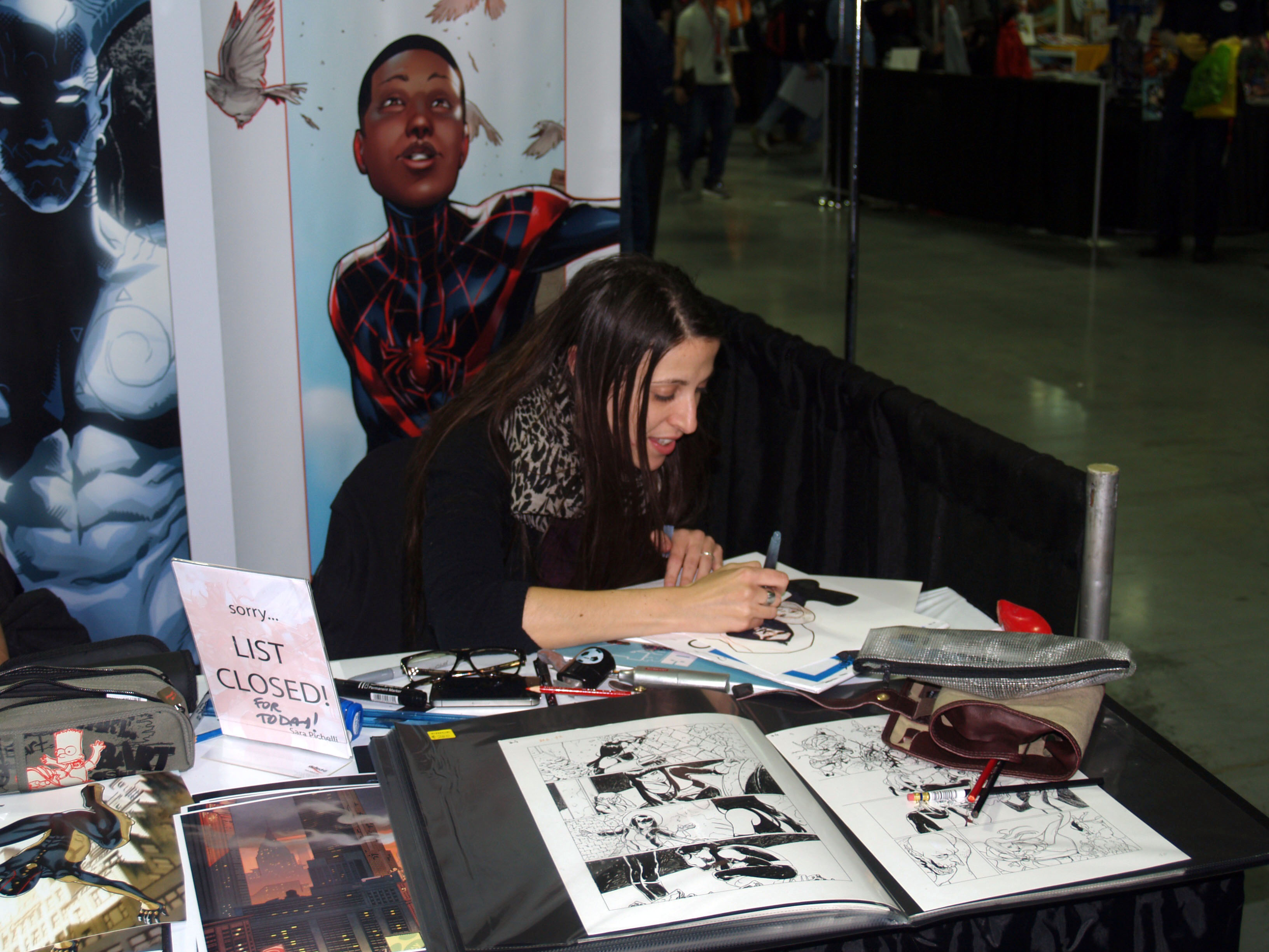 피첼리가 뉴욕 코믹 콘에서 스케치하는 모습