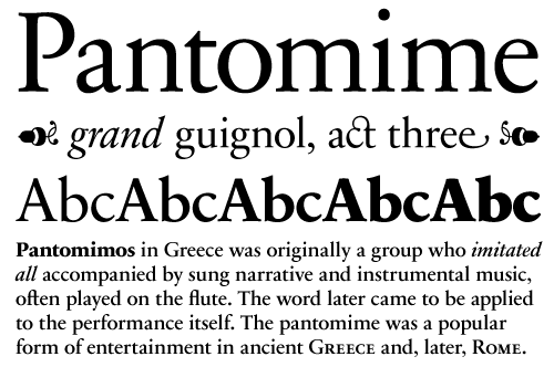 Sabon영어체는 가라몽의 우아함을 이어가면서 기능성과 효율성이 높은 서체이다. 사봉체는 가라몽을 독일에 알리는데 중요한 역할을 한 야콥 사봉의 이름을 가져왔다.[41]- 부드럽고 우아한 프랑스식 고전 세리프체의 특징이 잘 나타난다.