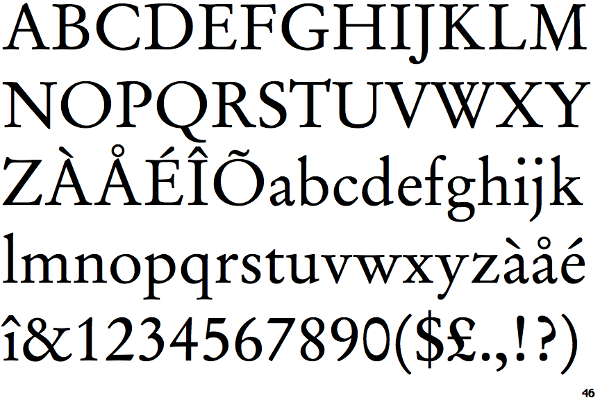 - 부드럽고 우아한 프랑스식 고전 세리프체의 특징이 잘 나타난다.