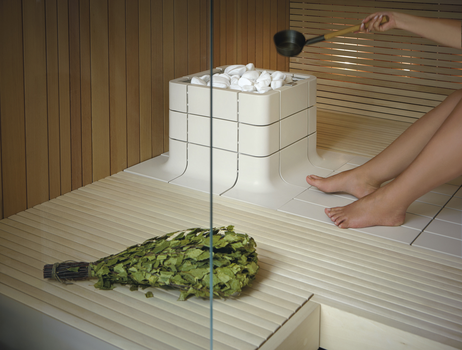 핀란드 사우나는 뜨겁게 달궈진 돌 위에 물을 뿌려 수증기를 발생시켜 체감 온도를 높인다. 이것을 뢰이뤼(löyly)라고 한다. 핀란드에서는 자작나무 가지를 묶어 몸을 두드리는 마사지를 하기도 한다.