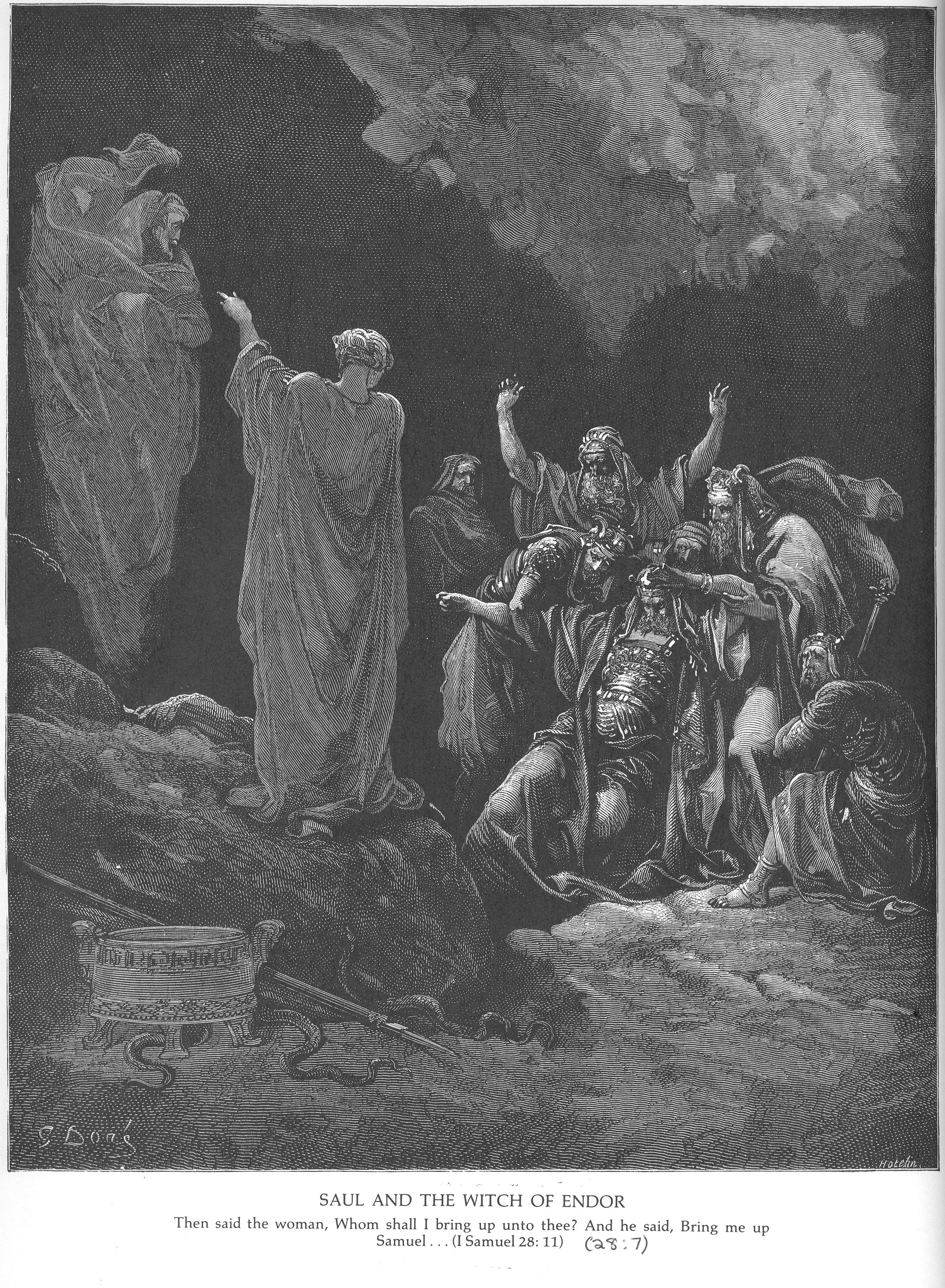 블레셋 군대가 수넴에 모이자, 사울은 군대를 이끌고 길보아 산에서 맞섰다. 전투 전, 엔돌의 여마법사를 찾아갔다. 여마법사는 사무엘의 영을 불러냈고,[47] 사무엘은 하나님이 사울을 버렸고, 더는 기도를 듣지 않으며, 왕국을 다윗에게 주었고, 다음 날 전투에서 사울이 죽을 것이라 예언했다.