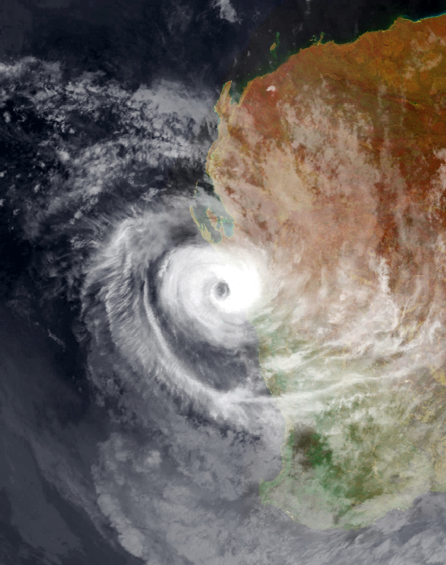 사이클론 세로자는 오스트레일리아 서부에 상륙하여 강풍과 폭우로 큰 피해를 입혔다. 특히 칼바리 지역은 건물 70%가 손상되고 그중 40%가 완전히 파괴되는 심각한 피해를 입었다.[100][101] 칼바리에서는 170km/h의 강풍과 100mm의 폭우가 기록되었다.[95] 노샘프턴 지역 또한 광범위한 피해를 입었으며, 피해 복구에는 수개월에서 수년이 걸릴 것으로 예상된다.[104][106]카나본의 124년 된 "원 마일 제티"는 붕괴되어 바다로 떠내려갔다.[98] 이로 인해 약 4,350가구가 정전을 겪었고, 이 수는 25,000가구 이상으로 증가했다.[94][96]