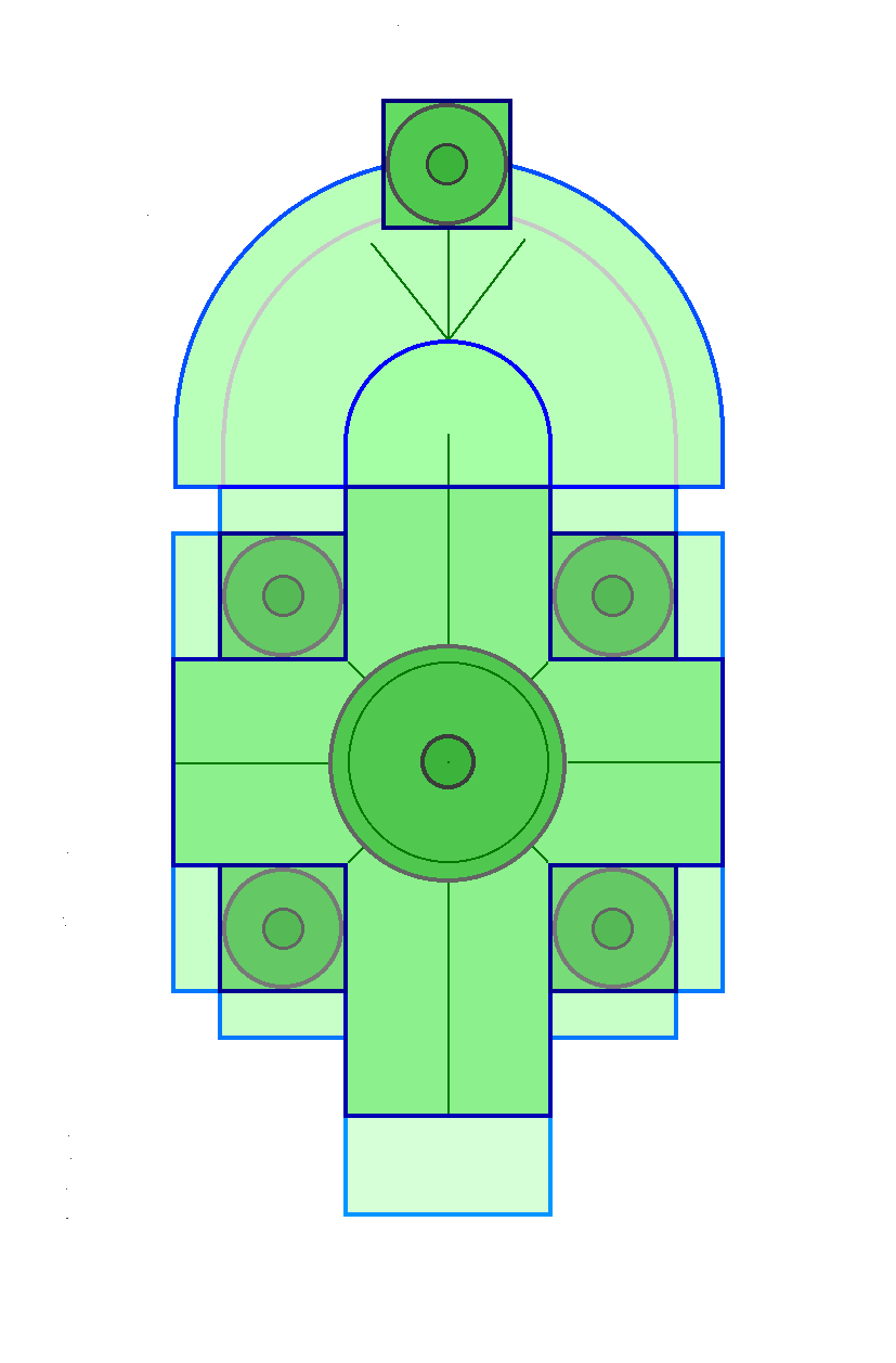 앱스 자체는 추가로 7개의 예배당으로 둘러싸여 있다.