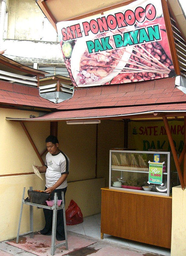- '''사테 포노로고''': 동부 자바 포노로고에서 유래한 사테 변형이다. 절인 닭고기를 썰어 만들며, 땅콩과 칠리 소스로 만든 소스와 함께 제공되고 채 썬 샬롯, 삼발 (칠리 페이스트) 및 라임 주스로 장식된다. 고기는 향신료와 간장에 절이는 바잼id 과정을 거치며 밥이나 론통 (떡)과 함께 제공된다. 한쪽에 구멍이 있는 테라코타 토기 그릴을 사용하며, 3개월 사용 후 교체한다.