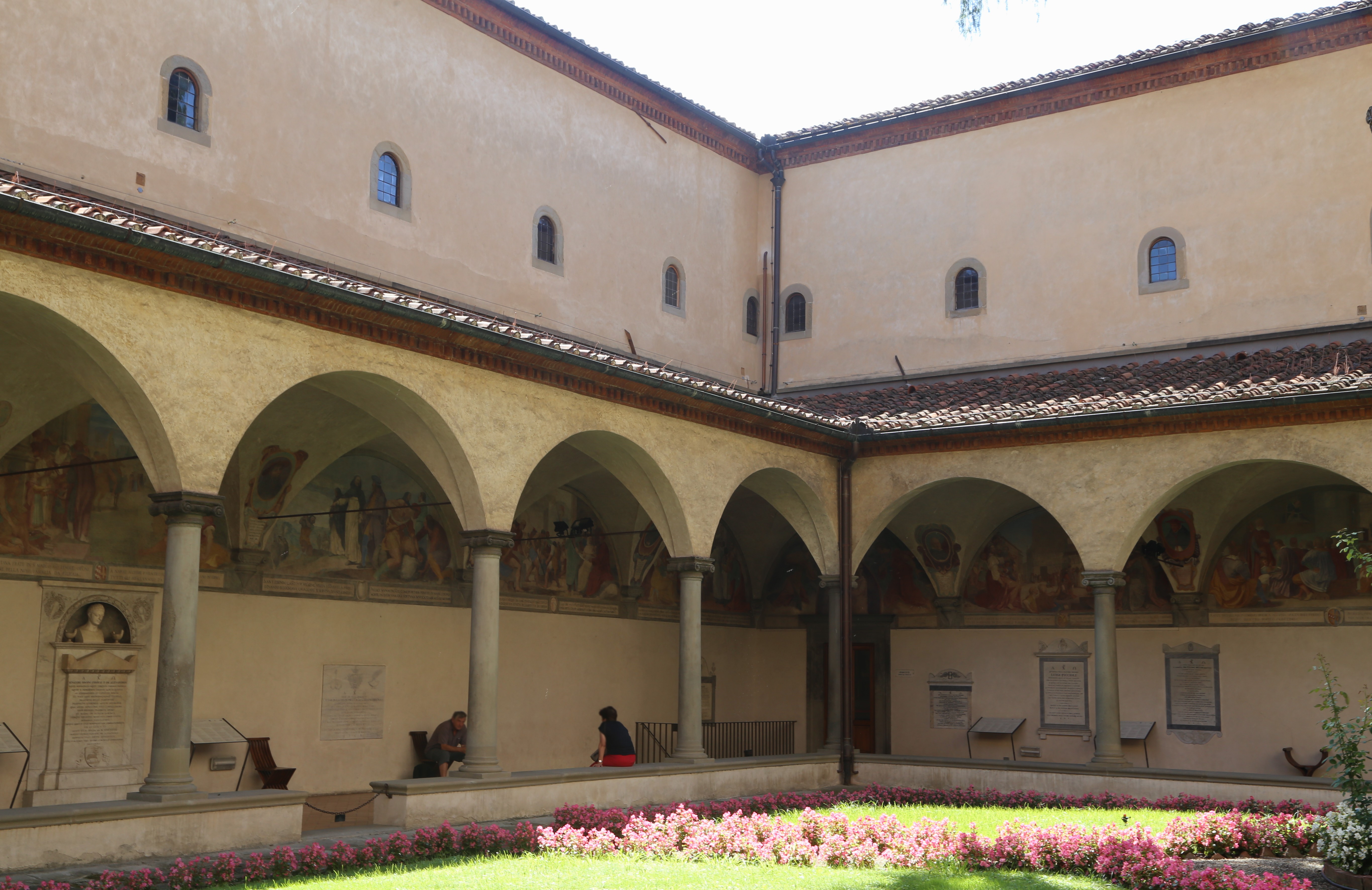 교회 뒤편에 위치한 이 회랑은 방문객에게 균형 잡힌 수도원 건축의 아름다움을 보여준다. 이는 질서정연하고 균형미를 갖춘 피렌체 르네상스 건축의 전형적인 예이다. 건축가 미켈로초가 코시모 데 메디치의 후원으로 1440년 이전에 건설하였다.[1]