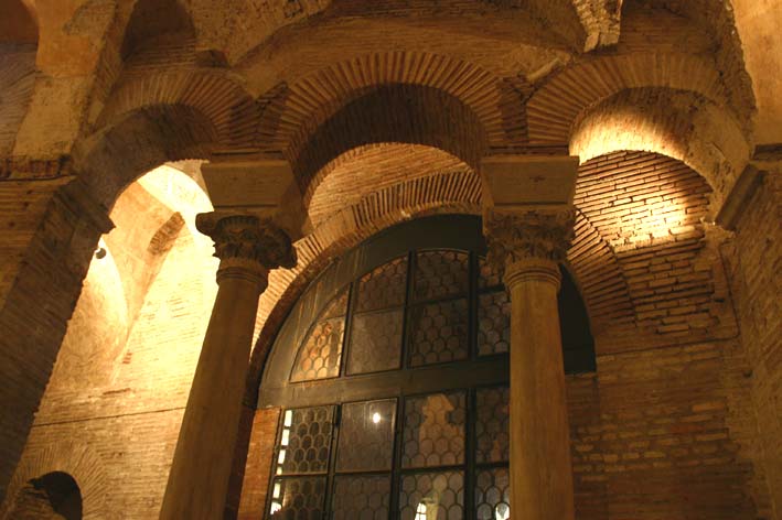 중앙 볼트는 벽돌 대신 서로 삽입된 속이 빈 튜브의 서양 기술을 사용했다. 이 방법은 이후 현대의 구조용 점토 타일로 발전한 테라코타 형태를 구조적으로 사용한 최초의 기록이다. 주랑과 갤러리는 중세 시대에 나중에 아치형으로 만들어졌다.[4]