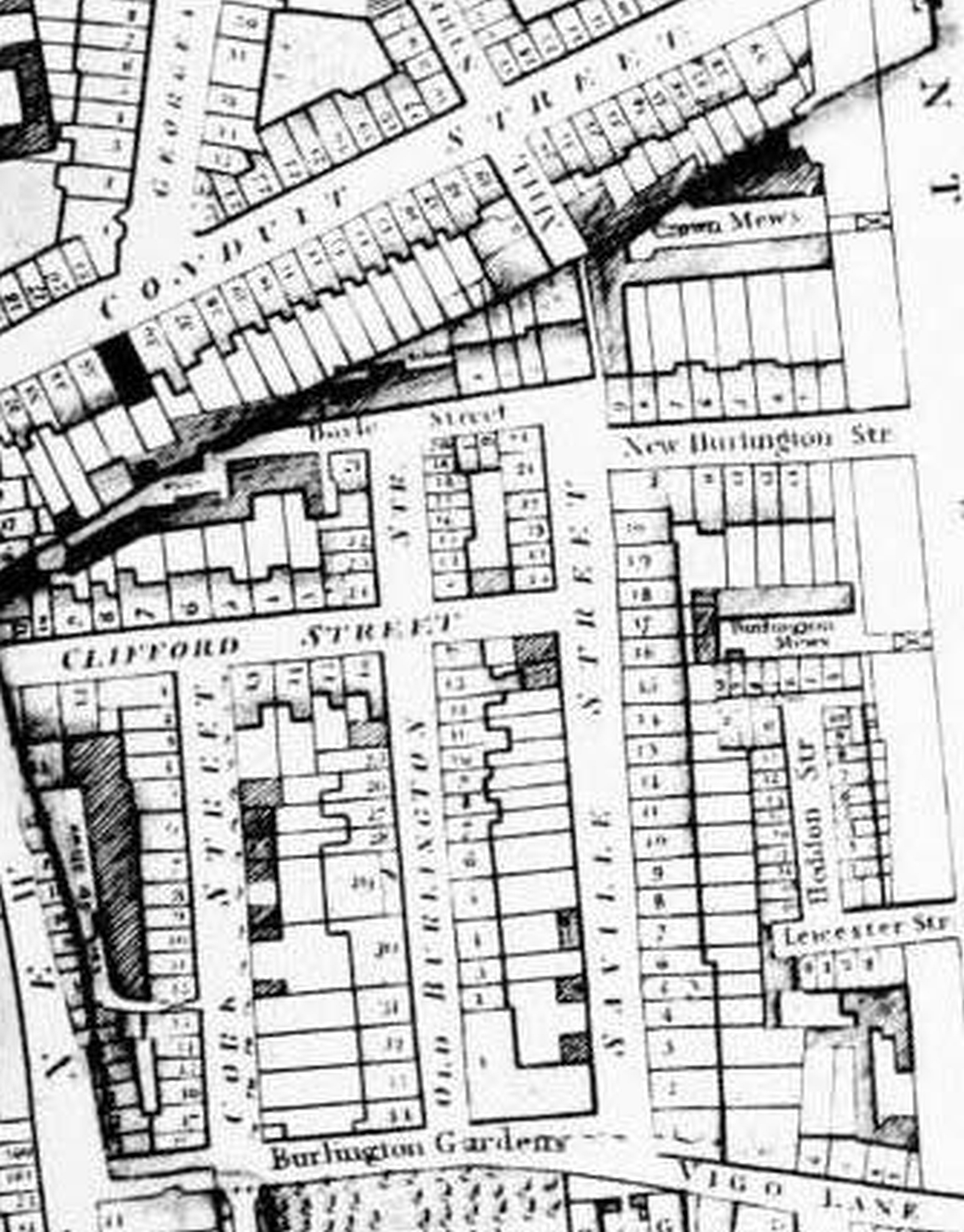 새빌 로는 1937-38년에 컨두이트 스트리트까지 확장되었고, 1939년에는 메트로폴리탄 경찰청이 보일 스트리트 코너에 건설되었다.[8] 1940년 9월 독일 공습으로 경찰서와 맞은편 건물인 21a호, 그리고 같은 달 초 7호가 파괴되었다.[19]