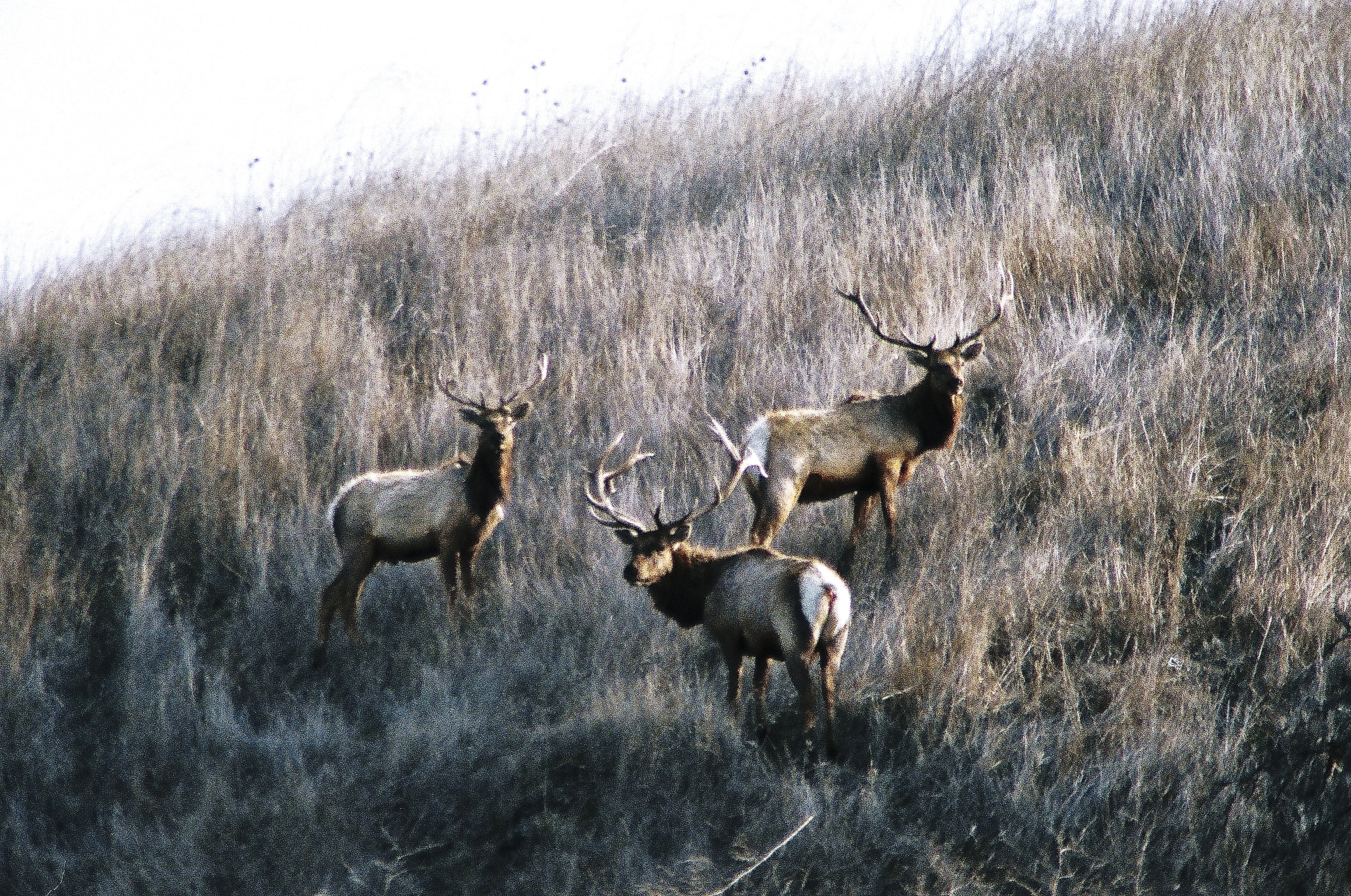 호세 호아킨 모라가 중위는 1776년 6월 몬터레이 프레시디오에서 병사들과 식민지 개척자들을 이끌고 산프란시스코 데 아시스 선교회를 설립하기 위해 가던 중 툴레 엘크와 프롱혼을 만났으며, 이 두 종을 사슴과 명확히 구분했다.[17] 캘리포니아 사슴은 캘리포니아 노새사슴(''Odocoileus hemionus'')이다. 허버트 유진 볼턴은 1776년 3월 23일에 있었던 데 안자 탐험대의 또 다른 스페인 탐험대의 엘크 보고서에 관해서도 기록했다. "길로이 밸리(샌타클래라 밸리)에서 모라가의 식료품 창고는 남자들이 길에서 벗어나지 않고 죽인 세 마리의 엘크로 채워졌다."[18] 1841년 바틀슨-비드웰 파티의 존 비드웰 장군은 이렇게 썼다. "나파와 샌타클래라와 같은 비옥한 계곡에는 말 그대로 수천 마리의 엘크가 있었다."[19]