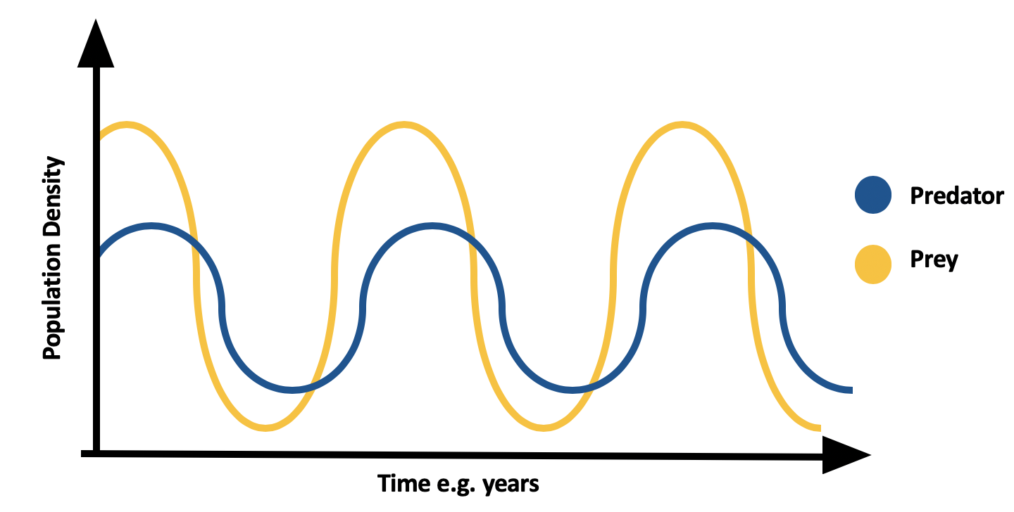 포식은 한 종(포식자)이 다른 종(피식자)을 먹이로 삼는 상호작용으로, 포식자와 피식자 모두의 개체군 크기에 영향을 미친다. 생물 종은 경쟁, 포식, 기생, 상호주의, 공생 등 다양한 방식으로 상호작용한다.상호 작용 | 종 1 | |||