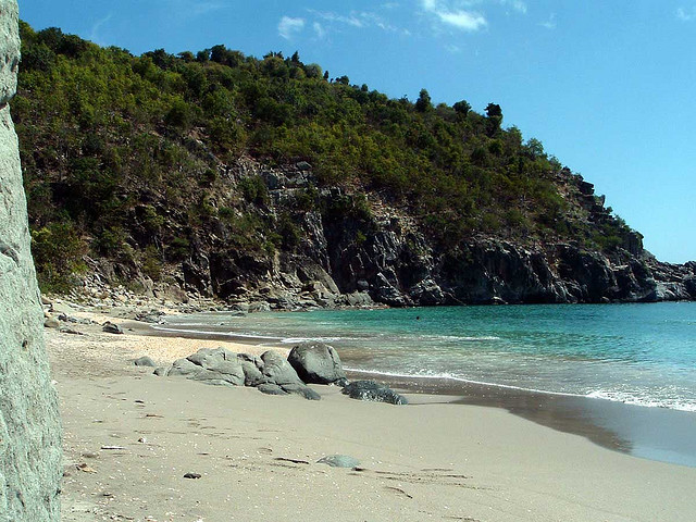 1493년, 크리스토퍼 콜럼버스가 이 섬을 발견하고 동생 바르톨로뮤 콜럼버스의 이름을 따서 섬의 이름을 지었다.[7] 유럽인들이 오기 전, 동부 카리브해의 타이노와 아라와크족은 이 섬을 '우아날라오'라고 불렀으며, 가끔씩 방문했을 가능성이 있다.[11] 그러나 담수 부족과 열악한 토양 때문에 섬에 영구적으로 거주하지는 않았던 것으로 보인다.[12] 이후 100년 동안 간헐적으로 방문하다가 본격적으로 식민지화가 시작되었다.[10]2. 2. 프랑스 식민지 시대