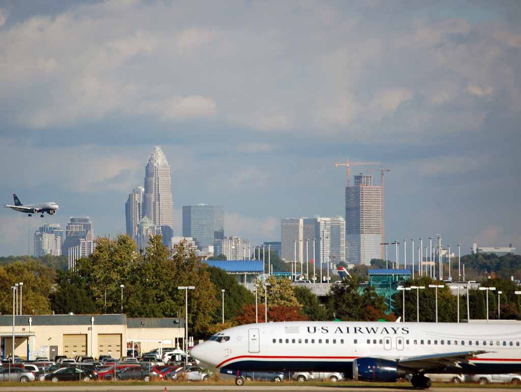 2005년 아메리카 웨스트 항공(America West Airlines)이 US 에어웨이즈를 역 인수(reverse takeover) 방식으로 인수한 후에도,[20] 샬럿은 합병된 항공사의 주요 국내 항공사 허브로 남았다. 다만 US 에어웨이즈의 국제선 대부분은 두 번째 허브인 필라델피아 국제공항에 집중되었다.