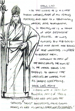 "키츠네"라는 삭제된 캐릭터는 나중에 키타나로 발전했으며, 원래는 샹 쭝의 딸로 설정되어 류 캉과 사랑에 빠져 아버지를 배신하는 역할이었다.[5]