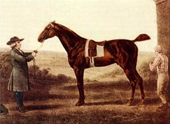 현대 경주마는 17세기 후반과 18세기 초 중동에서 영국으로 수입된 세 마리의 종마, 즉 바이어리 터크(1680년대), 달리 아라비안(1704년), 고돌핀 아라비안(1729년)을 조상으로 한다.[17][18] 알콕의 아라비안[19], 더시의 화이트 터크, 리즈 아라비안, 커웬스 베이 바브[20][21] 등 다른 수입 종마들도 영향력은 적었지만, 품종에 주목할 만한 공헌을 했다. 회색 털 색깔에 크게 기여한 것으로 여겨지는 브라운로우 터크도 있었다.[19] 역사 기록에 따르면 총 160마리 정도의 종마가 경주마 품종 탄생에 기여했다. 아라비안, 바브, 터크 등 동부 혈통의 말들을 영국 토착암말[22]과 교배시킨 것이 1791년 일반 종마 등록부(GSB)의 생성과 말의 공식적인 등록으로 이어졌다.[23] 피터 윌릿에 따르면, 기초 종마의 약 50%가 아라비안 혈통이며, 나머지는 투르크메니스탄과 바브 혈통이 거의 같은 비율로 나뉜다.[22]