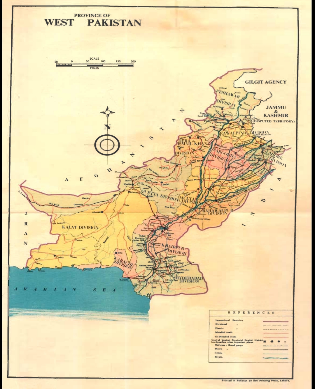 파키스탄은 인도에 의해 약 1609.34km 떨어진 두 지역으로 구성되었는데, 서파키스탄은 3개의 총독 관할 지역(카이베르 파크툰크와, 서 펀자브, 신드주), 1개의 최고 위원 관할 지역(발루치스탄주), 발루치스탄 주 연합, 여러 토후국(바하왈푸르, 치트랄, 디르, 훈자, 카이푸르, 스와트 등), 연방 수도 지역(카라치 주변) 및 부족 지역으로 구성되었다.[1]