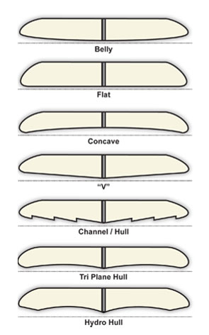 물에 닿는 보드의 표면은 대개 평평하거나 오목하지만, 때로는 볼록하기도 하다. 보드 바닥면을 따라 물의 흐름을 극대화하거나, 방향을 바꾸거나, 변경하기 위해 채널, 친, 스텝 및 기타 플래닝 기능을 보드에 성형할 수 있다.