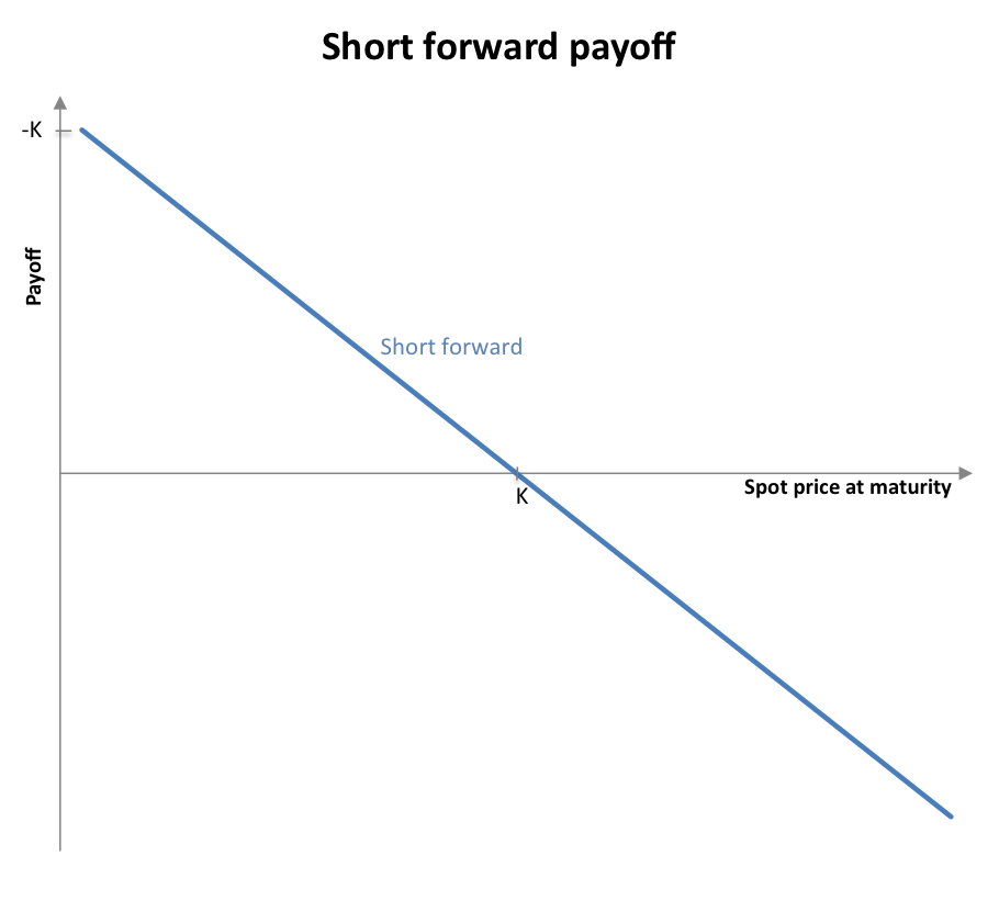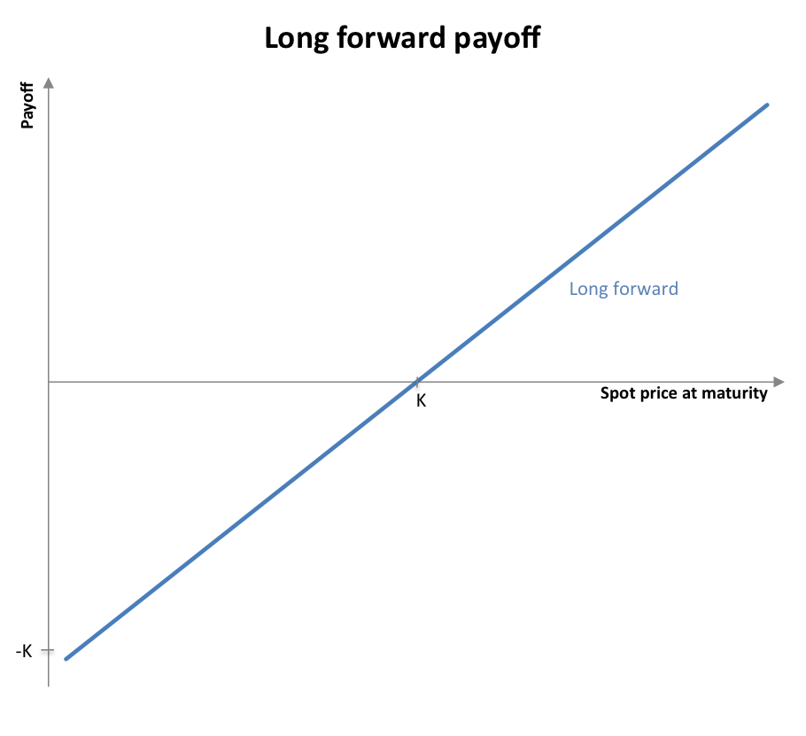 선도 계약으로 약정한 가격을 K, 만기일에 기초자산의 가격을 라 할 때, 롱 포지션과 숏 포지션의 기회이익은 위와 동일한 수식으로 표현된다.[3]