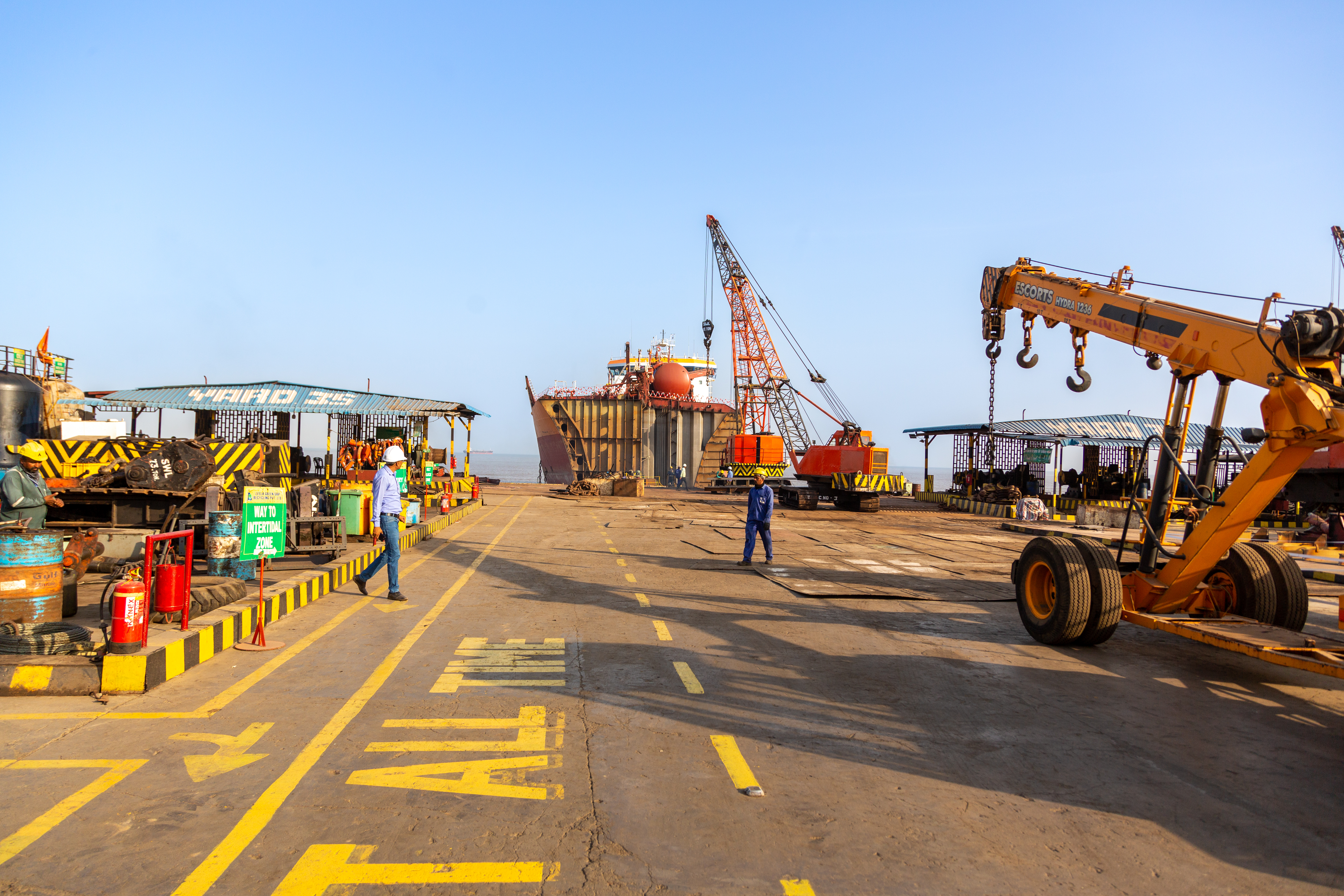작업 전, 규제, 오염, 세관 당국의 검사를 거쳐 허가를 받는다. 연료, 유압유, 냉각수, 윤활유, 소화액을 배출하고, 재사용 가능한 설비는 판매한다. 폐기물은 구자라트 해양 위원회의 유해 폐기물 처리 시설로 보내진다. 사용 가능 오일은 정부 승인 정유소에서 처리한다. 이후 물질 회수, 빌지 처리, 생물학적 위험 물질 (석면, 유리솜 등) 처리 후 검사를 거쳐 폐기 또는 판매한다.[29]