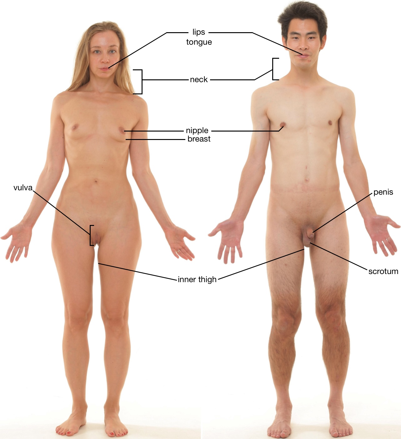 남녀 모두에게 가장 흥분되는 성감대는 성기이지만, 그 외에도 다양한 성감대가 존재하며 성별에 따라 차이를 보인다.[85][21]여성 | 남성 | ||||