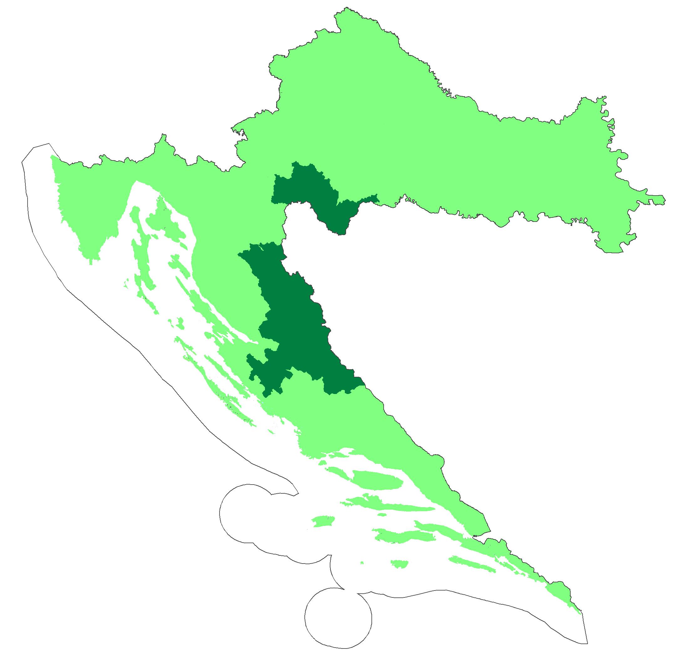 - 달마티아 북부 일부와 같이 과거 군정국경지대는 아니었지만, 자칭 수도인 크닌을 포함하여 세르브계 인구가 다수 또는 상당수를 차지하는 지역