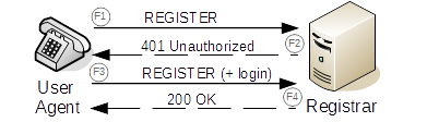 - 등록 서버 (Registrar): UA로부터의 메시지를 바탕으로 컨택트 주소(SIP URI와 IP 주소의 쌍)를 위치 서버에 등록하는 서버.