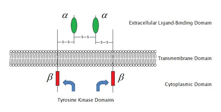 이러한 수용체들은 대부분 리간드와 결합한 후 이량체화되어 추가적인 신호 전달을 활성화한다. 예를 들어 상피세포 성장 인자(EGF) 수용체가 리간드 EGF와 결합하면 두 수용체가 이량체화된 다음 각 수용체 분자의 효소 부분에 있는 티로신 잔기의 인산화를 거친다. 이는 티로신 키나아제를 활성화하고 추가적인 세포 내 반응을 촉매한다.