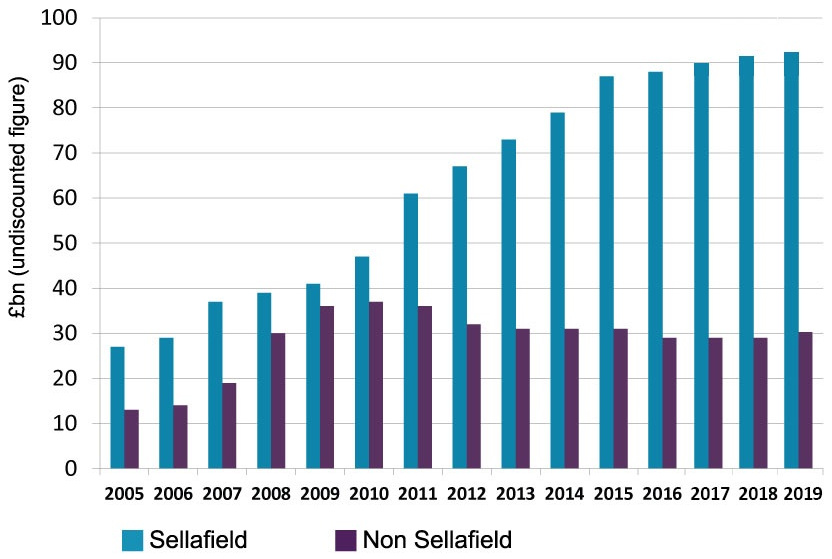 | 추정 연도 | 셀라필드* | 기타 NDA 부지 | 총계 |