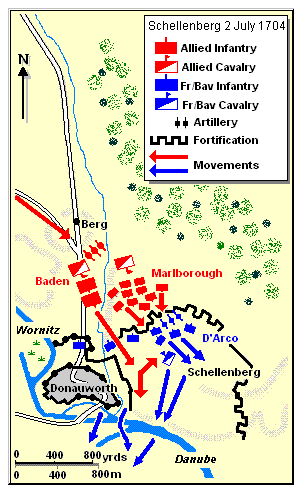 말버러는 셸렌베르크에 대한 직접 공격이 큰 대가를 치를 것임을 알았지만, 이것이 도나우뵈르트를 빠르게 점령하는 유일한 방법이라고 확신했다.[79]