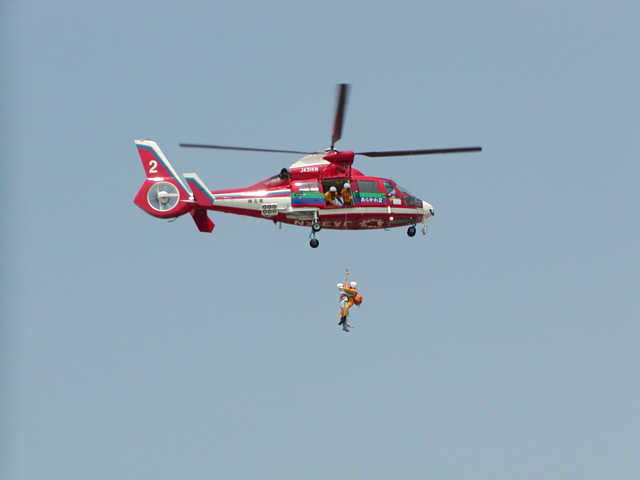 방재 항공대 대원은 시정촌 소방 본부에서 파견된 구조대원이며,[10] 정령 지정 도시 소방 항공대는 소방국 내 구조대원을 선발하거나 특별 고도 구조대 등 지정 부대가 탑승한다.[11] 응급 구조사 자격 보유 대원이 최소 1명 탑승한다.[12]