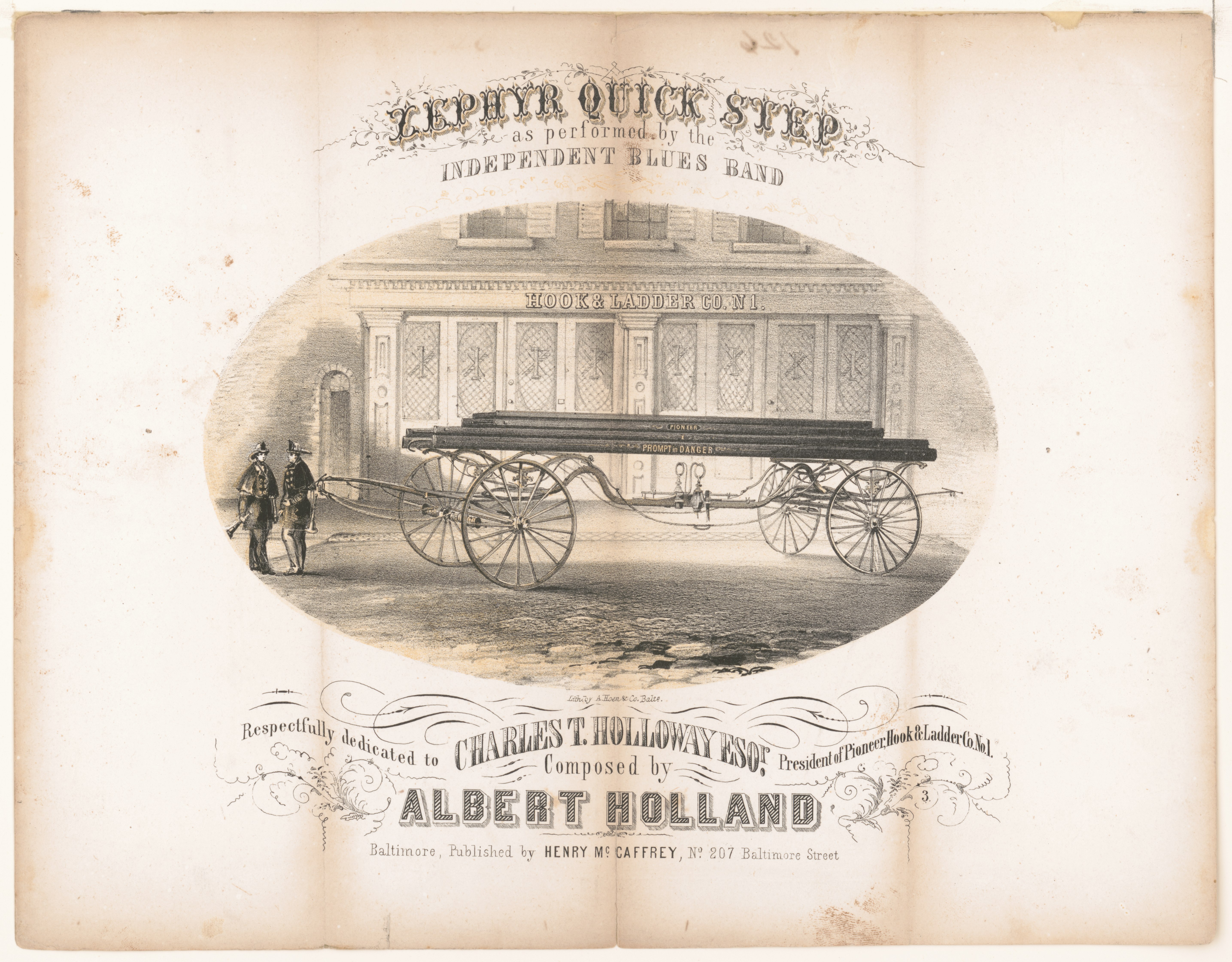 |thumb|left|1838년 필라델피아 소방차, 인접 건물 구출 시도. 소방관 1명(헬멧 착용)이 물을 지휘하고, 그의 왼쪽에 3명이 펌프를 조작하고 있다. 손으로 채색됨. 엔진 오른쪽에 호스 트럭이 있다.]]