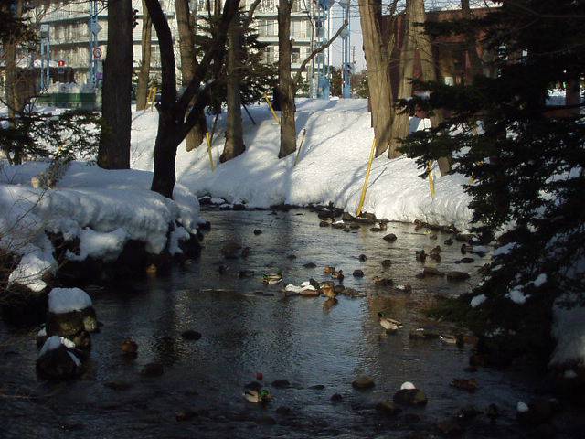 札幌・鴨々川 京に似たカモの遊ぶ流れ(くつろぎ空間)/北海道