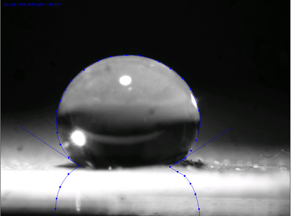 θ는 접촉각 측정기를 사용하여 측정할 수 있다.