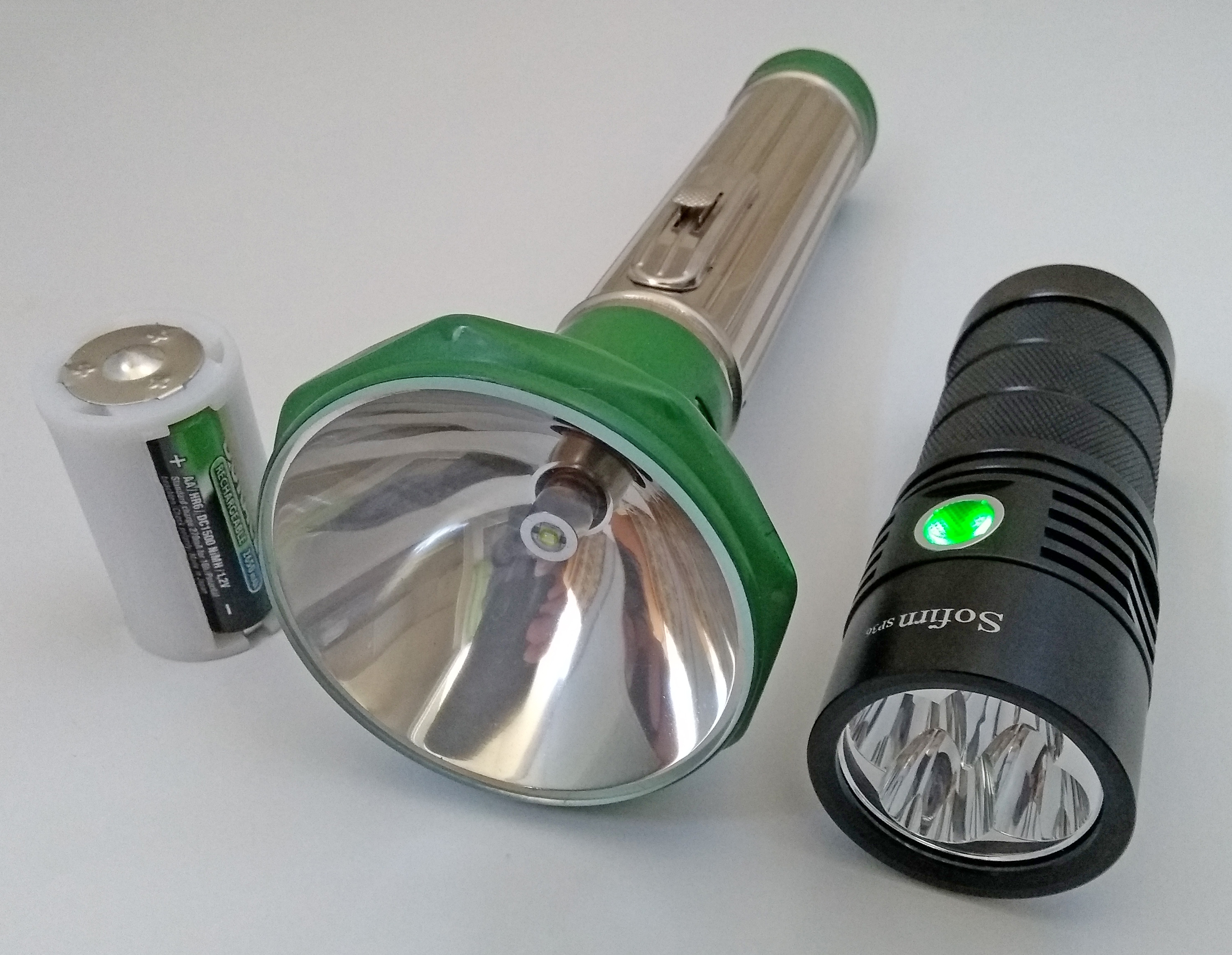 초기 휴대용 전등은 망간 건전지를 사용했지만, 안정적인 전력 공급이 어려워 자주 작동을 멈춰야 했다.[34] 또한, 전구는 에너지 효율이 낮은 탄소 필라멘트 전구였기 때문에 짧은 시간 동안만 사용할 수 있었다. 이러한 이유로 초기 휴대용 전등은 "플래시라이트"(flashlight)라는 이름으로 불리게 되었다.[28]