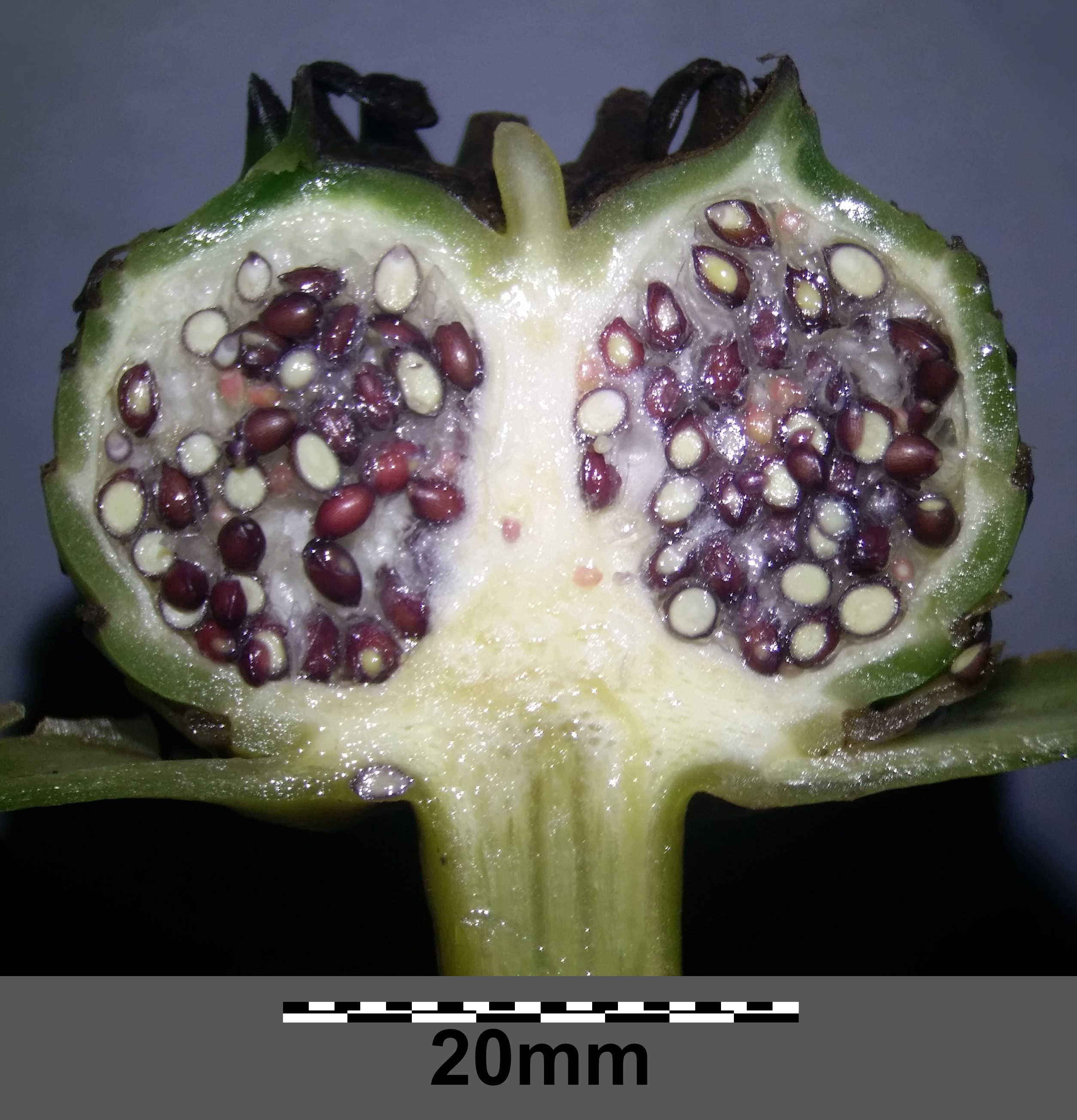 '''S''': 꽃받침, '''P''': 꽃잎, '''St''': 수술, '''An''': 꽃밥, '''O''': 씨방, '''SD''': 암술머리 원반, '''CT''': 심피 치아