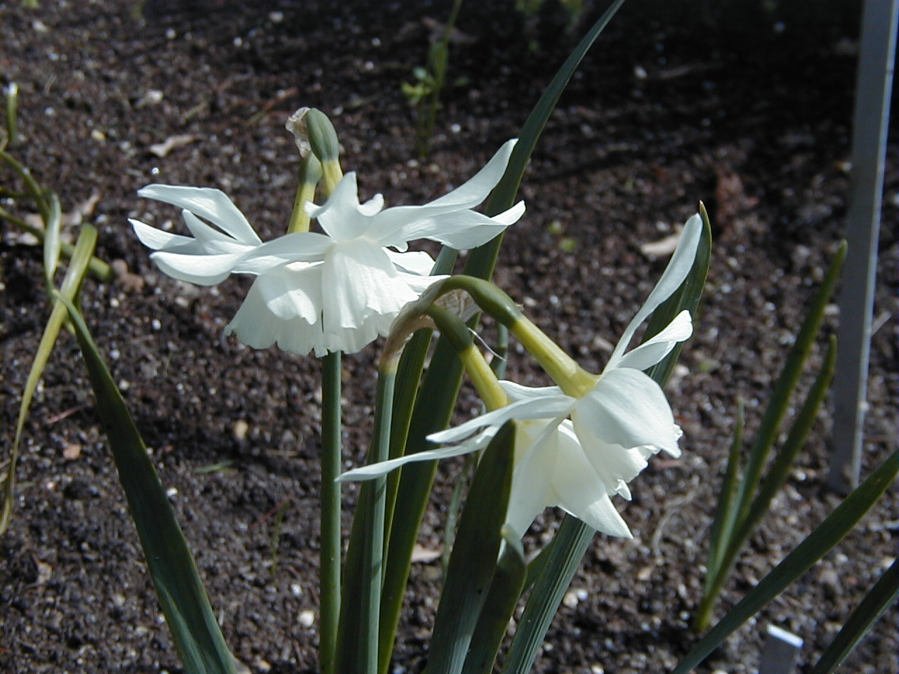 ''Jonquilla'', ''Apodanthi'' 및 ''Narcissus''절을 포함하는 "종이 흰색" 형태는 비교적 길고 좁은 통과 짧고 얕으며 퍼지는 부화관을 가지고 있다. 꽃은 수평이고 향기롭다.