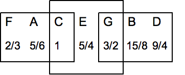 이처럼 3과 5의 거듭제곱을 이용하여 다양한 음높이를 만들고, 이명동음 중 하나를 제거하여 12음 음계를 구성하는 것이 가능하다.[2]