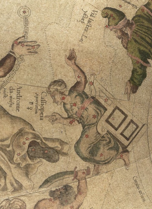 1551년, 플랑드르 출신 지도 제작자 게르하르두스 메르카토르는 천구의에 카시오페이아를 묘사하면서 쉐다르를 여왕의 왼쪽 가슴 근처에 위치시켰다.[18] 이는 아랍어 어원과 일치한다.