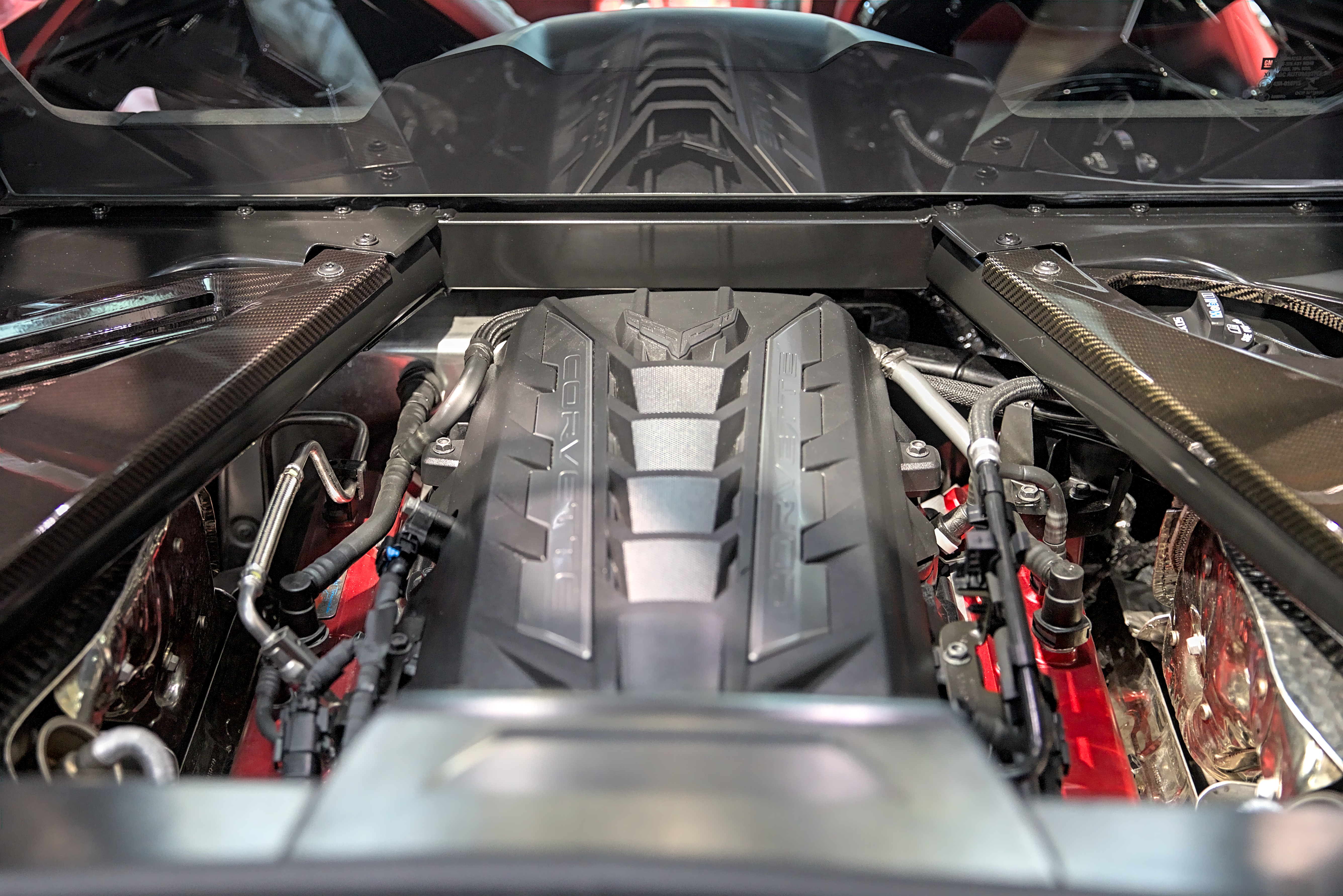 콜벳 C8의 첫 양산형 모델인 스팅레이에는 새로운 중간 장착 6.2L LT2 V8 엔진이 장착되어 있다.
