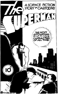 1933년 1월, 오하이오주 클리블랜드의 글렌빌 고등학교 학생이었던 제리 시걸(Jerry Siegel)이 이야기를 쓰고, 같은 반 친구였던 조 슈스터(Joe Shuster)가 그림을 그려 「슈퍼맨의 지배(The Reign of the Superman)」라는 팬진을 제작했다.[222] 이것은 광기의 과학자에 의해 초능력을 얻은 남자가 궁극적으로 초능력을 악용하려는 과학자를 죽이고, 능력을 잃고 원래의 부랑자로 돌아가는 이야기였다.