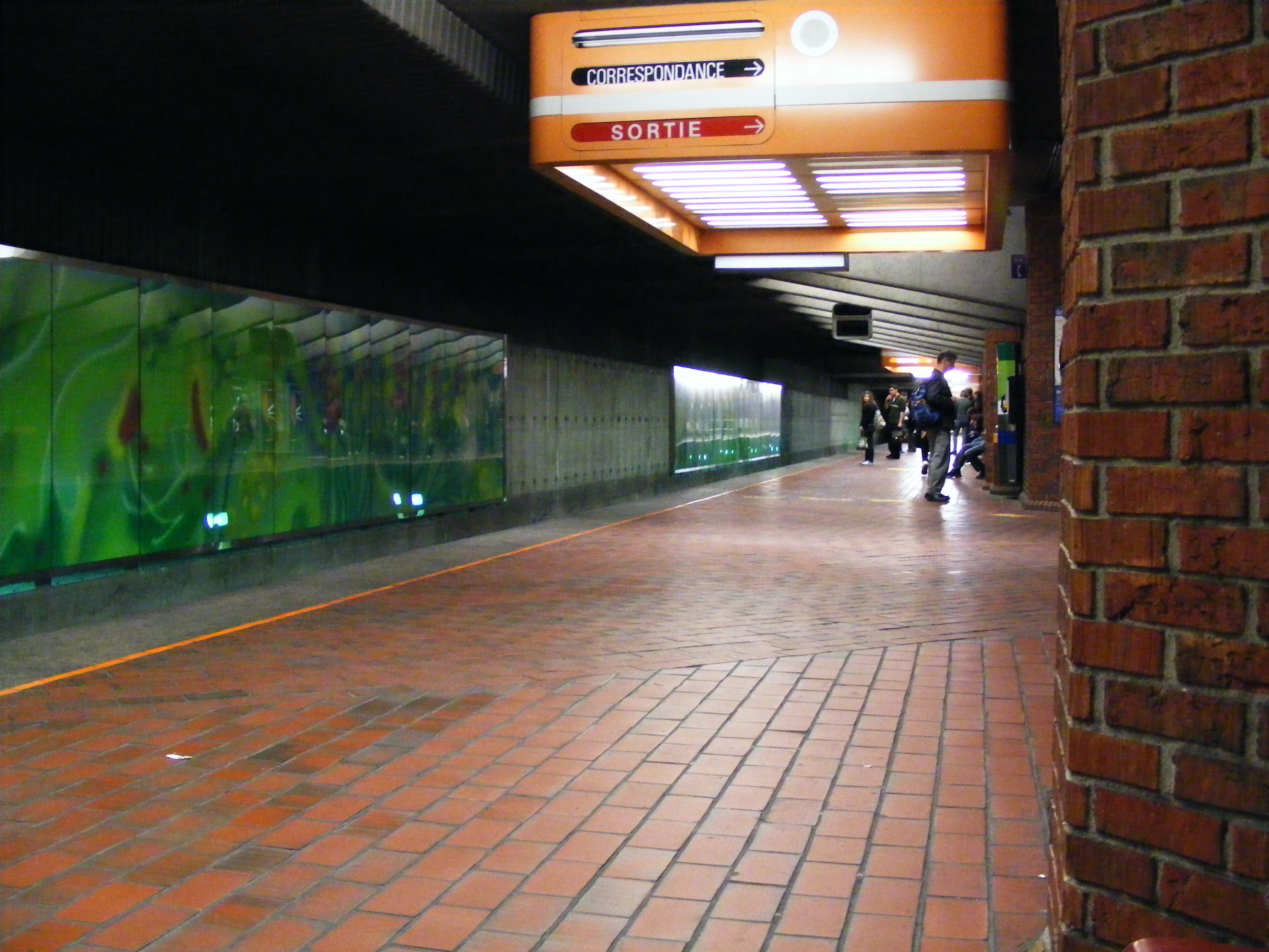 클로드 귀테의 벽화 《사계절》 (Les quatre saisons)은 승강장 네 곳에 설치되어 있다. 몽모랑시 방면 승강장은 봄, 생미셸 방면은 여름, 스노든 방면은 가을, 코트베르튀 방면은 겨울을 나타낸다.[6] 이 벽화는 승강장 전체 길이에 걸쳐 500개의 석면 시멘트 패널에 그려졌으며, 각 계절과 관련된 잎과 날씨를 반추상적으로 묘사한다. 계절은 승강장 주위를 시계 반대 방향으로 순서대로 나타난다.개통 직후, 그라피티로 인해 몽모랑시 방면 벽화의 절반과 코트베르튀 방면 벽화 대부분이 훼손되었다.[6] STM은 그라피티 복원 작업에 착수하여 벽화를 새로 그려 다시 전시하였다.[6] 2004년, STM의 복원 계획에 따라 모든 벽화가 제거되었고, 작가가 벽화를 다시 그릴 수 있도록 하였다. 이후 벽화는 서서히 역에 재설치되었다. 2010년 6월 현재, 모든 벽화가 다시 칠해졌으며, 향후 훼손을 방지하기 위해 보호 유리 시트와 함께 역의 네 개 승강장에 부분적으로 재설치되었다.