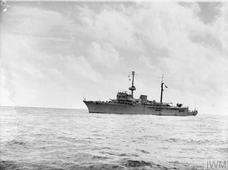 ''에리트레아'', 1943년 9월 14일 실론 해군 지원군의 HMS 오버데일 와이크에 의해 나포된 후 항복하기 위해 콜롬보 항구에 들어서다.