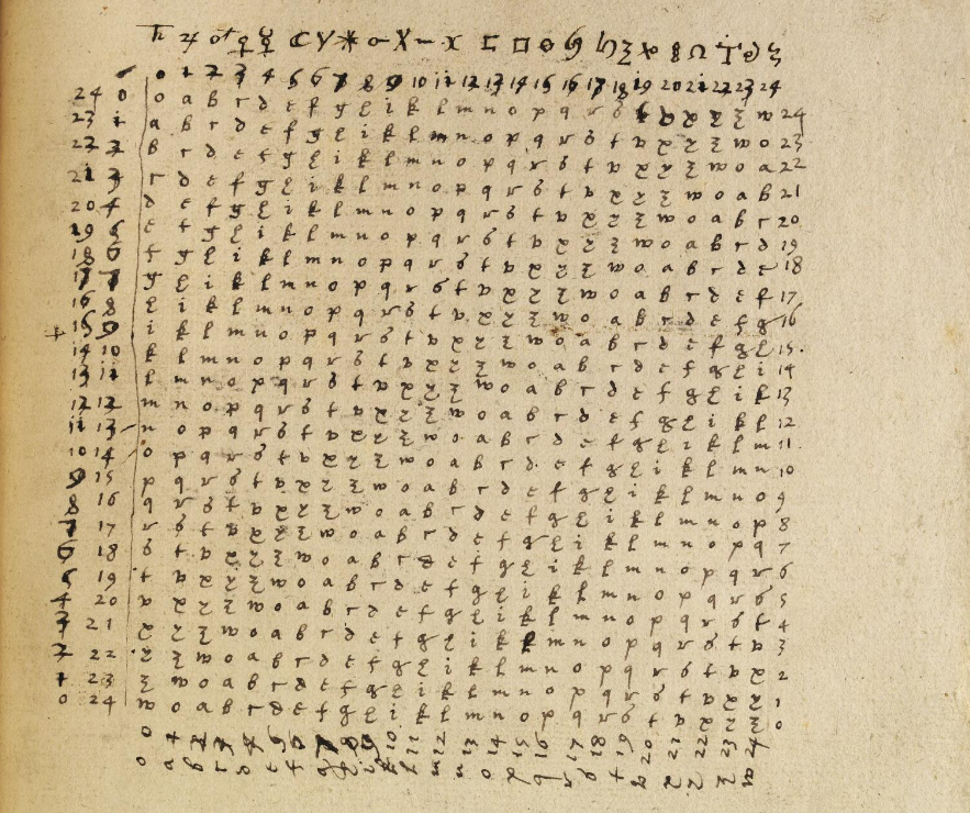 스테가노그래피는 중세 및 근대에도 다양한 방식으로 발전했다. 요하네스 트리테미우스는 그의 저서 ''폴리그라피아''에서 정보를 신에 대한 라틴어 찬양문에 숨길 수 있는 "아베-마리아-암호"를 개발했다. 예를 들어, "''Auctor Sapientissimus Conseruans Angelica Deferat Nobis Charitas Potentissimi Creatoris''"에는 숨겨진 단어 ''VICIPEDIA''가 들어 있다.[5]