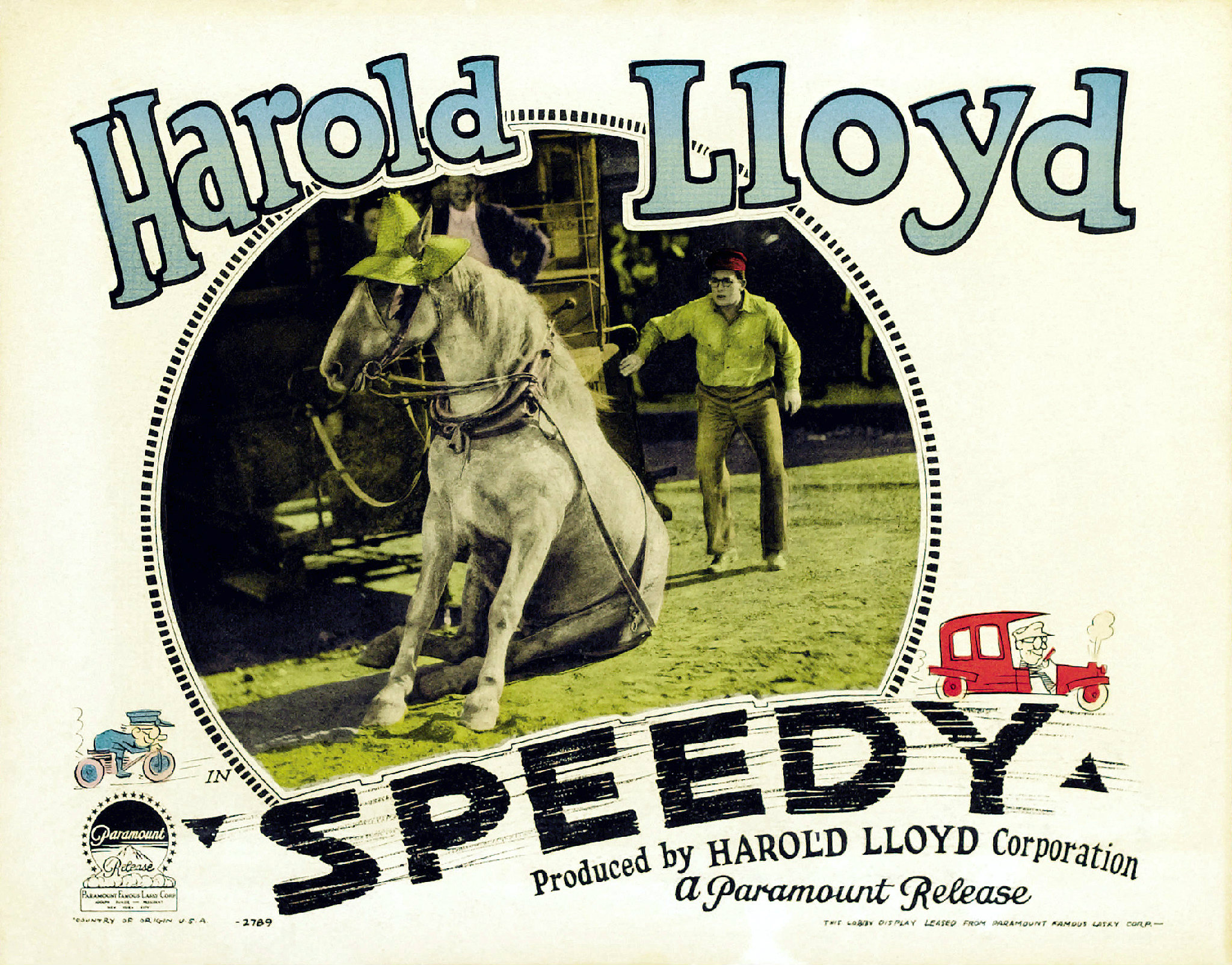 스피디는 1928년 개봉한 미국 코미디 무성 영화이다. 뉴욕의 마지막 말 마차를 운영하는 팝 딜런의 손녀 제인 딜런과 사랑에 빠진 해롤드 "스피디" 스위프트는 노면 전차 회사의 음모를 알게 되고, 팝의 노선을 지키기 위해 고군분투한다. 스피디는 택시 운전사로 일하며 베이브 루스를 양키 스타디움까지 태워주는 특별한 경험을 하기도 하며, 깡패들과의 추격전 끝에 팝의 노선을 지켜낸다. 이 영화는 코니 아일랜드 장면 촬영에 많은 비용이 소요되었으며, 테드 와일드가 아카데미 감독상 후보에 오르기도 했다. UCLA 영화 & 텔레비전 아카이브에 의해 무성 영화와 유성 영화 버전 모두 완전하게 보존되어 있다.