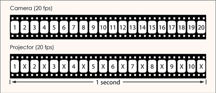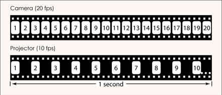 위의 설명을 읽기 쉽게 하기 위해 초당 10 fps의 투사 속도를 선택했다. (24fps 영화 표준은 슬로 오버크랭킹을 드물게 만들지만 그럼에도 전문 장비에서 사용할 수 있다).[11]
