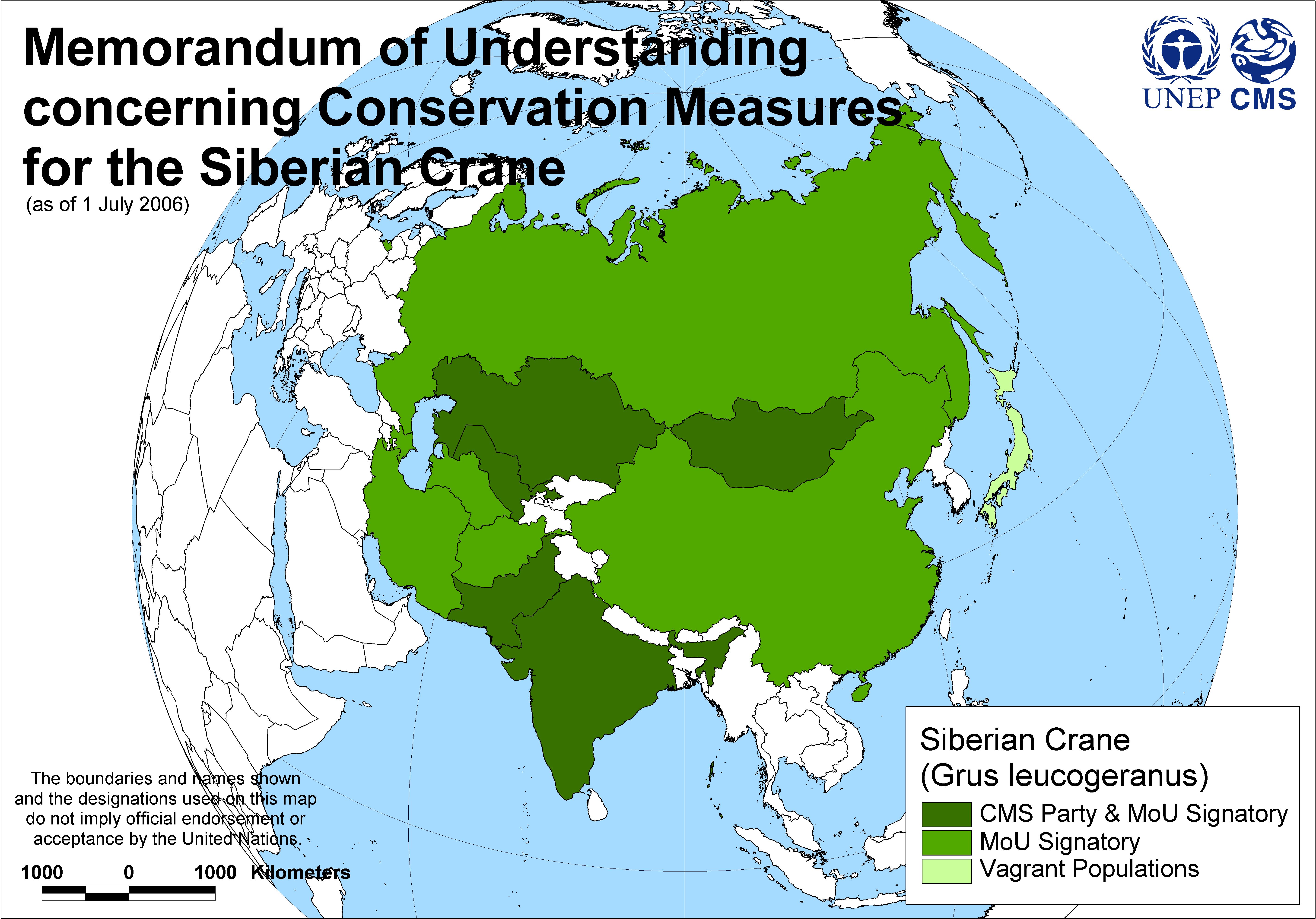 시베리아흰두루미는 '아프리카-유라시아 철새 수생 조류 보존 협정'(AEWA) 및 본 협약에 따른 시베리아흰두루미 보존 조치에 관한 양해각서의 대상 종이다.
