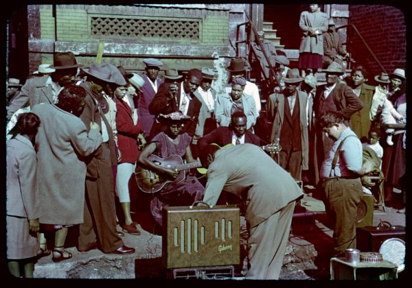제2차 세계 대전 당시 아프리카계 미국인 대이동이 증가하면서 시카고 블루스가 탄생하는 배경이 되었다. 1930년대부터 1950년대에 걸쳐 남부 주에서 시카고로 많은 블루스 음악가들이 이주했다. 그들은 고향인 남부의 블루스를 북부의 일렉트릭 블루스로 새롭게 발전시켰다. 그들은 라이브 하우스를 열고, 맥스웰 스트리트[16] 등에서도 연주 활동을 펼쳤다. 거리 공연은 블루스 뮤지션들에게 더 큰 음량의 필요성을 인식시켰고, 이것 또한 시카고 블루스가 일렉트릭화, 밴드화로 나아간 요인으로 여겨진다.
