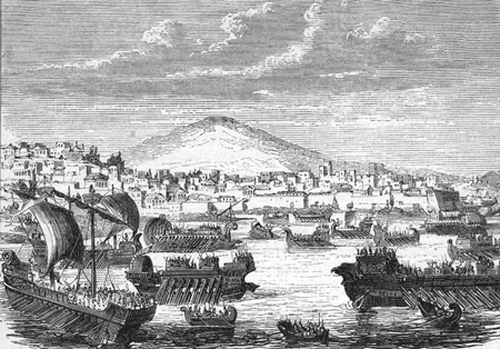 기원전 413년 증원군 | 호플리테스 5,000명 다수의 경보병 삼단 노선 73척 |