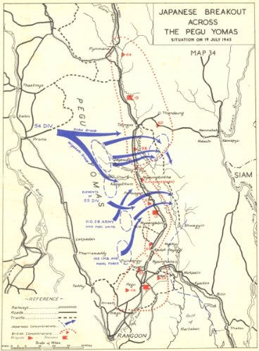 영국 정보부는 일본군의 돌파 시도를 인지하고 있었지만, 자세한 정보는 없었다. 이에 몽타규 스톱포드 장군은 프랭크 메세르비 장군에게 100마일이 넘는 전선에 제4군단을 배치하여 길을 막도록 명령했다.[9] 1945년 7월 2일, 구르카 정찰대가 소규모 일본군 부대를 매복하여 전멸시키고, 일본군의 돌파 작전("매 작전")에 대한 완벽한 작전 계획이 담긴 통신 가방을 노획했다.[9][30] 이 정보는 영국군에게 신속하게 배포되었고, 영국군은 2주 동안 대비할 시간을 얻었다.[6]