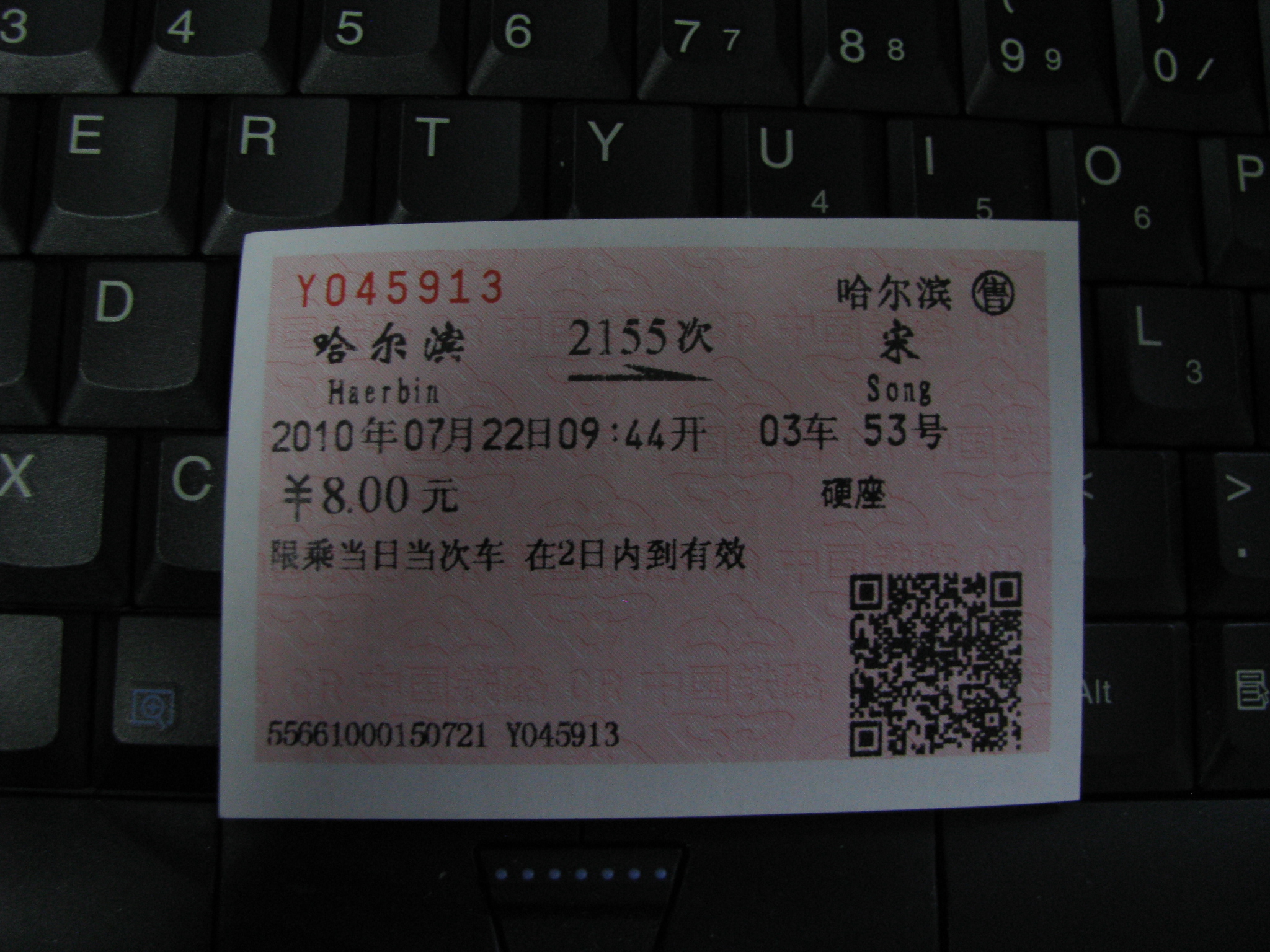 하얼빈역 출발 승차권